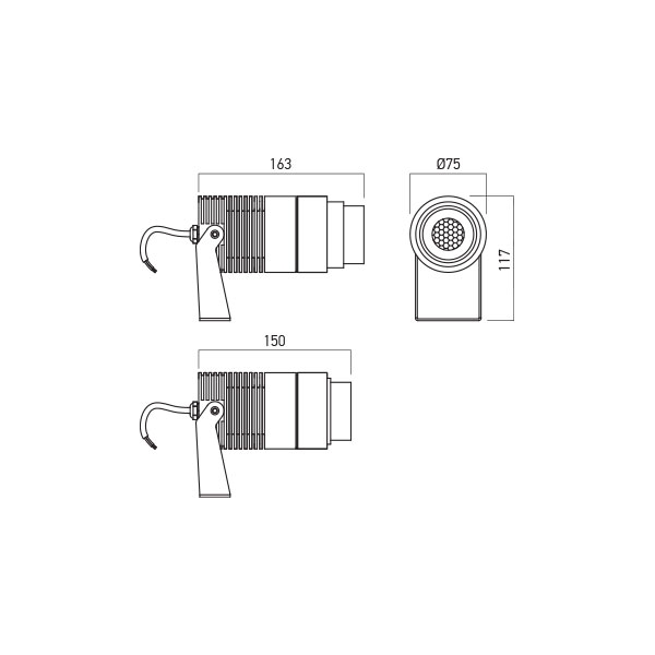 насочващо се тяло и монтажна планка от лят алуминий в тъмно сив цвят, оптически регулируем 10°-40°, захранващ кабел покрит с гума, 3x0.75 mm² с дължина 1m, PVC земен шип