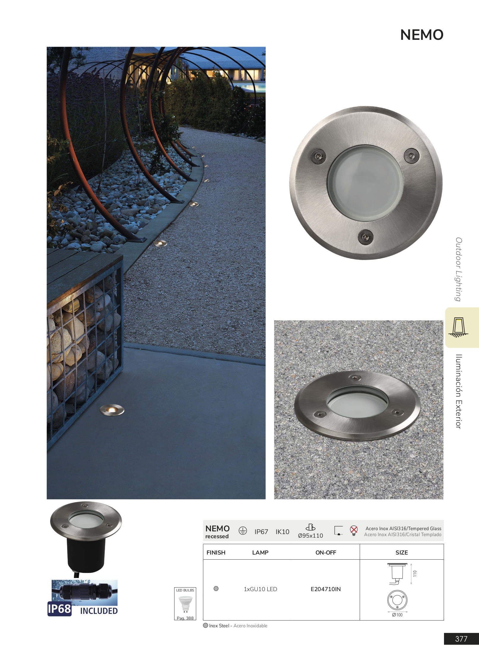 Осветителното тяло E204710IN (Recessed GU10 LED Steel) представлява външна лампа в съвременен стил. E204710IN (Recessed GU10 LED Steel) е от категорията осветителни тела и е подходящо за осветяване на различни помещения и пространства като: градинско осветление, външно осветление.