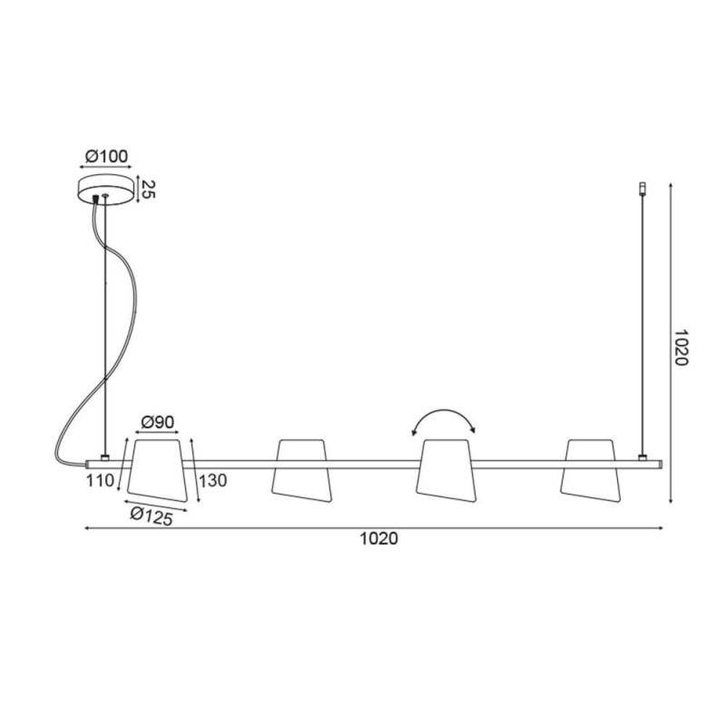 Ел. мощност 4 х 60 W Размери 102см x 102см x Ф12.5см Производител ACA-Lighting, Гърция