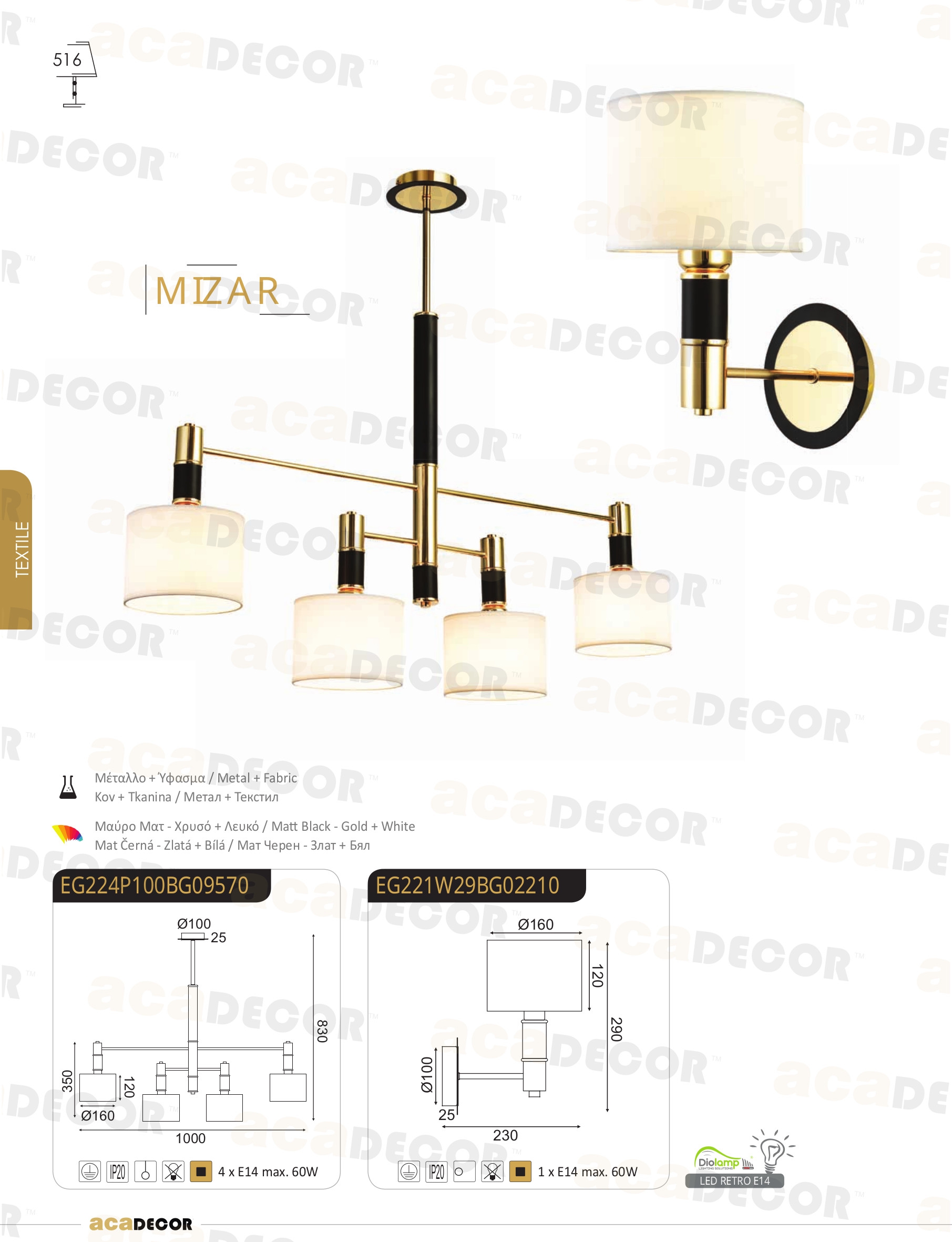 Осветителното тяло EG224P100BG ще осигури комфорт и естетика във всяко помещение, в което се постави. Цялостната визия и дизайн на лампата и вложените в изработката й материали, като метал в цвят черен мат, метал в цвят злато, текстил в бял цвят, ще допринесат за един неповторим стил. Благодарение на дългогодишния опит, качествените материали и строгия контрол на качеството на изработка на производителя ACA-Lighting (Гърция), EG224P100BG е на високо европейско ниво.