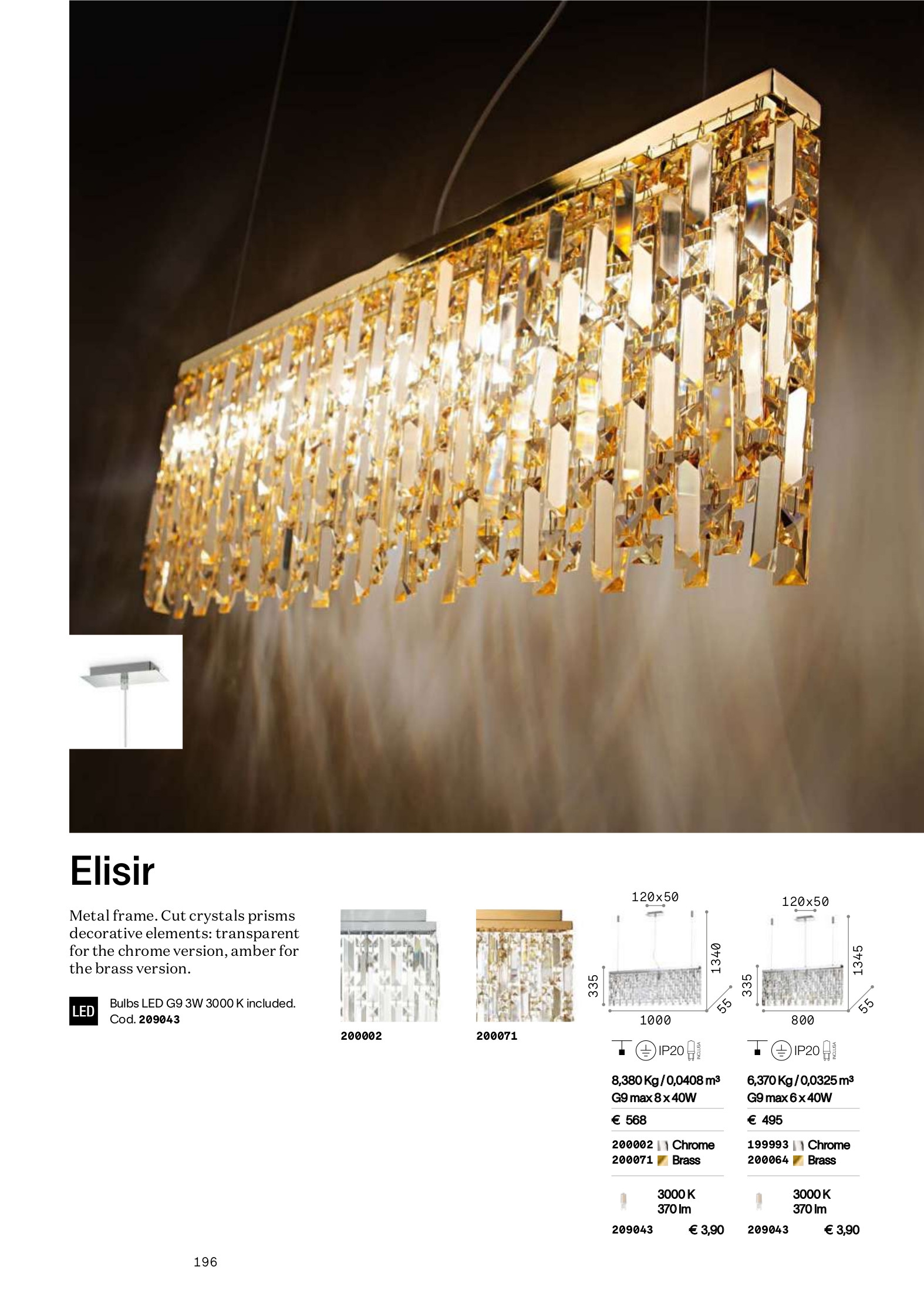Осветителното тяло ^ELISIR SP6 CROMO ще осигури комфорт и естетика във всяко помещение, в което се постави. Цялостната визия и дизайн на лампата и вложените в изработката й материали, като хромиран метал, низове от прозрачни кристални призми, ще допринесат за един неповторим стил. Благодарение на дългогодишния опит, качествените материали и строгия контрол на качеството на изработка на производителя Ideal-Lux (Италия), ^ELISIR SP6 CROMO е на високо европейско ниво.