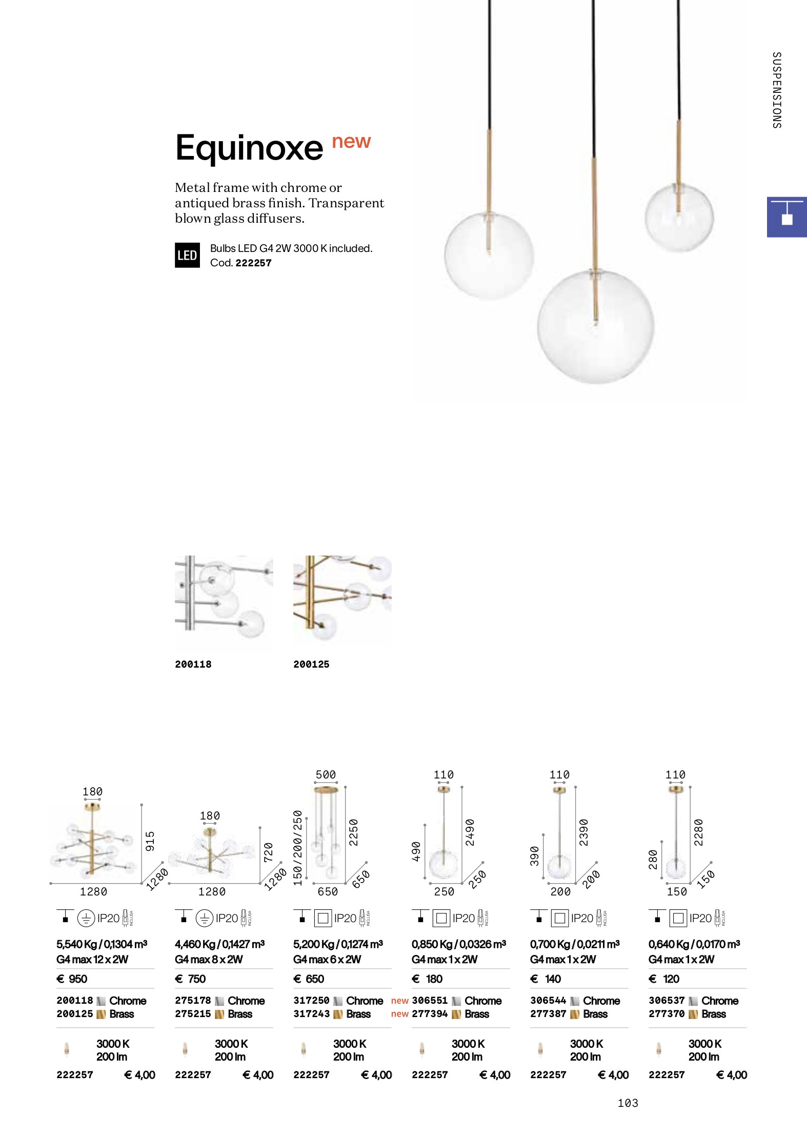 Осветителното тяло EQUINOXE SP6 OTTONE представлява полилей в съвременен стил. EQUINOXE SP6 OTTONE е от категорията осветителни тела и е подходящо за осветяване на различни помещения и пространства като: всекидневна / хол, спалня, кухня, трапезария, офис.
