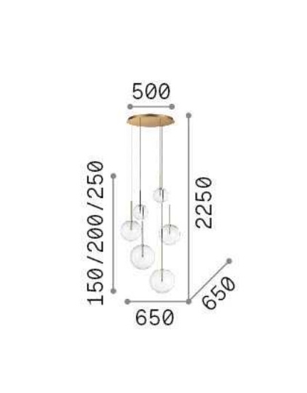 Ел. мощност 6 х 2 W Размери Ф65см x Ф15/20/25см x 225см Производител Ideal-Lux, Италия