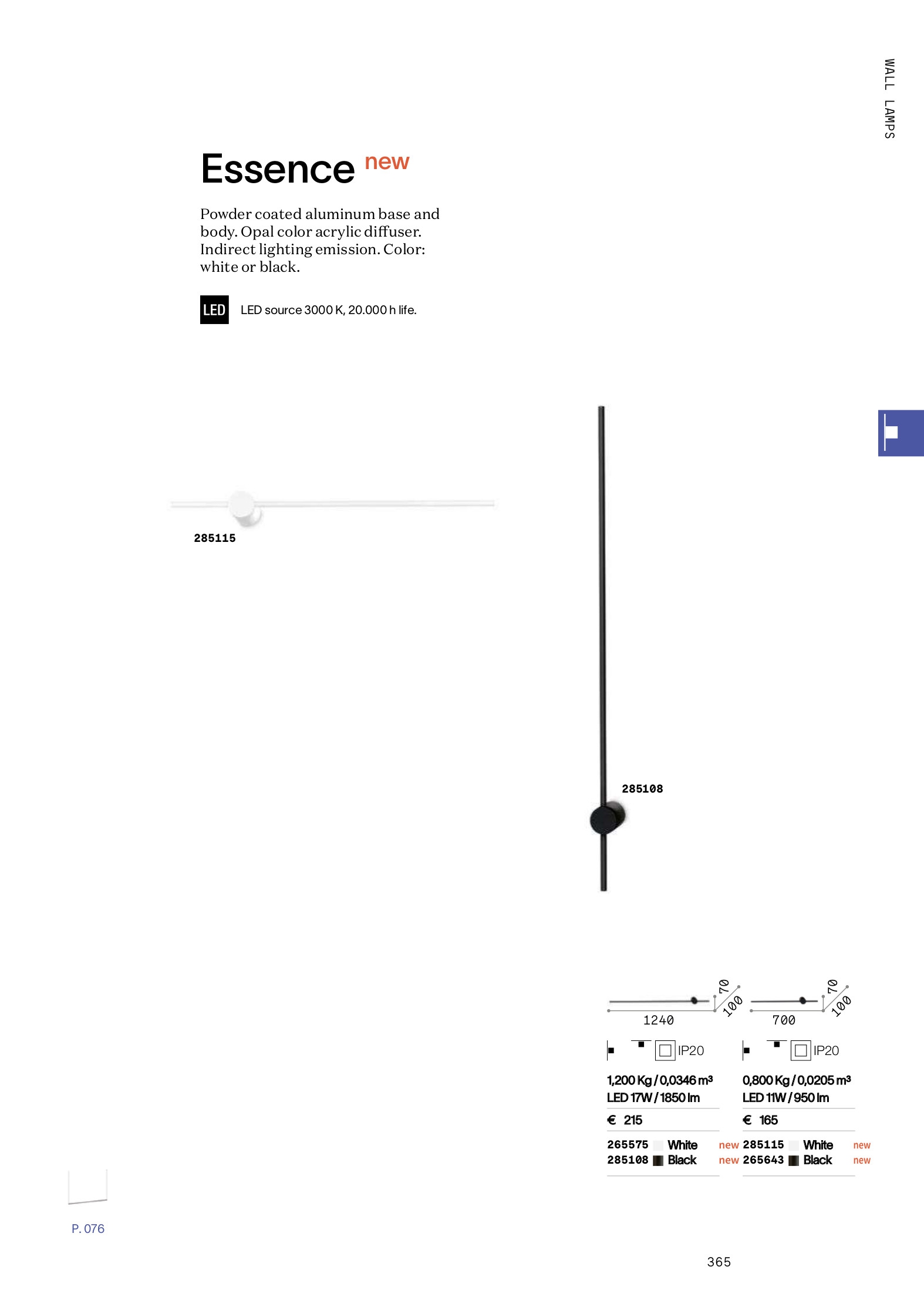 Осветителното тяло ESSENCE AP 17W NERO ще осигури комфорт и естетика във всяко помещение, в което се постави. Цялостната визия и дизайн на лампата и вложените в изработката й материали, като алуминий в черен цвят, дифузер от опалово бял полимер, ще допринесат за един неповторим стил. Благодарение на дългогодишния опит, качествените материали и строгия контрол на качеството на изработка на производителя Ideal-Lux (Италия), ESSENCE AP 17W NERO е на високо европейско ниво.