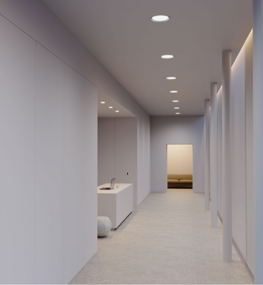 отлят под налягане алуминий с електростатично покритие в пясъчно бяло, корпус от отлят под налягане анодизиран алуминий, служещ за радиатор за LED модулите, двоен дифузьор от полистирол - опал сатен и призматичен, превключвател за ССТ 3000/4000/6000K