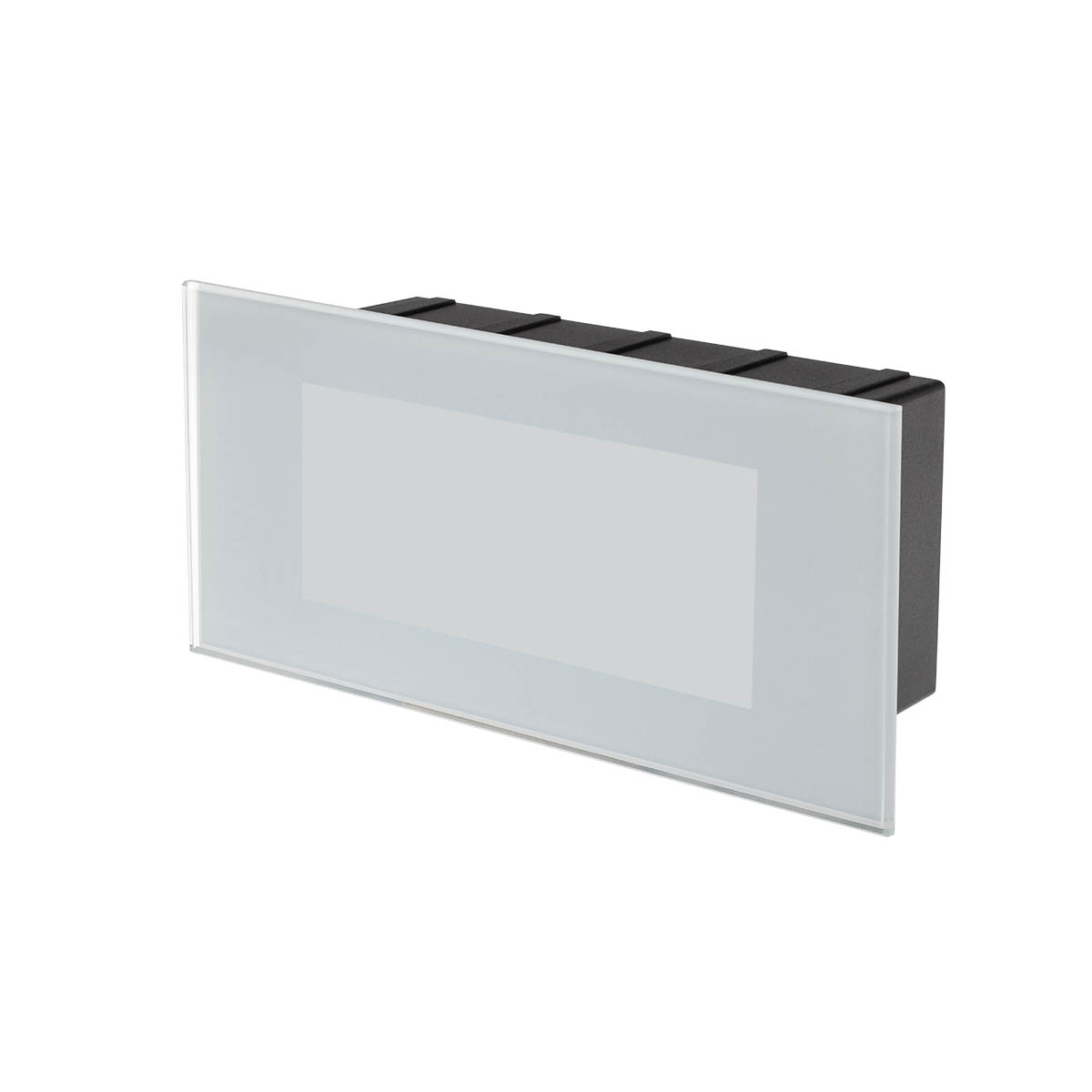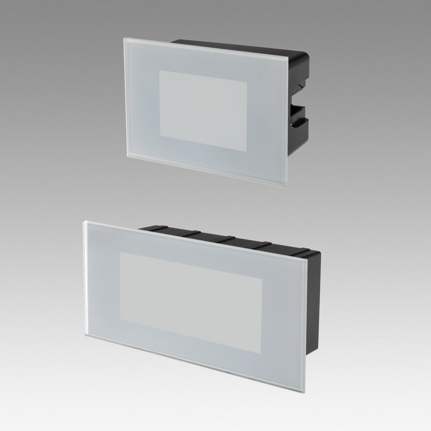 корпус от поликарбонат в бяло с 4 стоманени скоби за монтаж в конзолната кутия, алуминиева рамка за фиксиране на дифузьора от матирано бяло стъкло, вградена кутия от черен поликарбонат