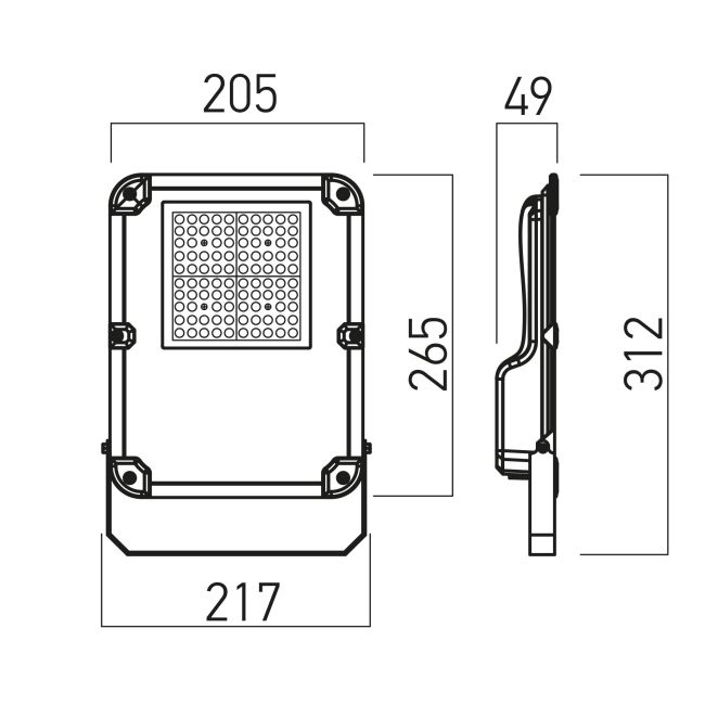 лята под налягане алуминиева сплав, с висок коефициент на термична дисперсия, с електростатично нанесено покритие в тъмно сив цвят, лещи от поликарбонат, с дисперсия 90°, дифузьор от прозрачно закалено стъкло с дебелина 4 мм и черна декоративна рамка