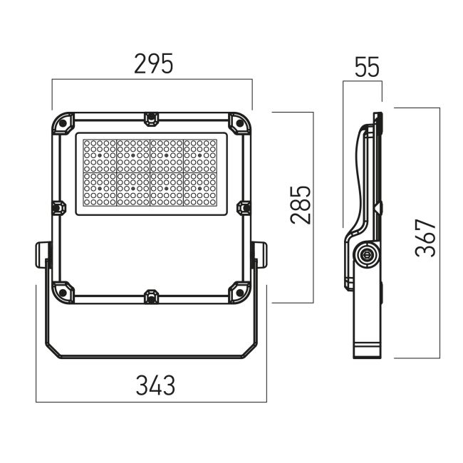лята под налягане алуминиева сплав, с висок коефициент на термична дисперсия, с електростатично нанесено покритие в тъмно сив цвят, лещи от поликарбонат с дисперсия 80°x150°, дифузьор от прозрачно закалено стъкло с дебелина 4мм и черна декоративна рамка