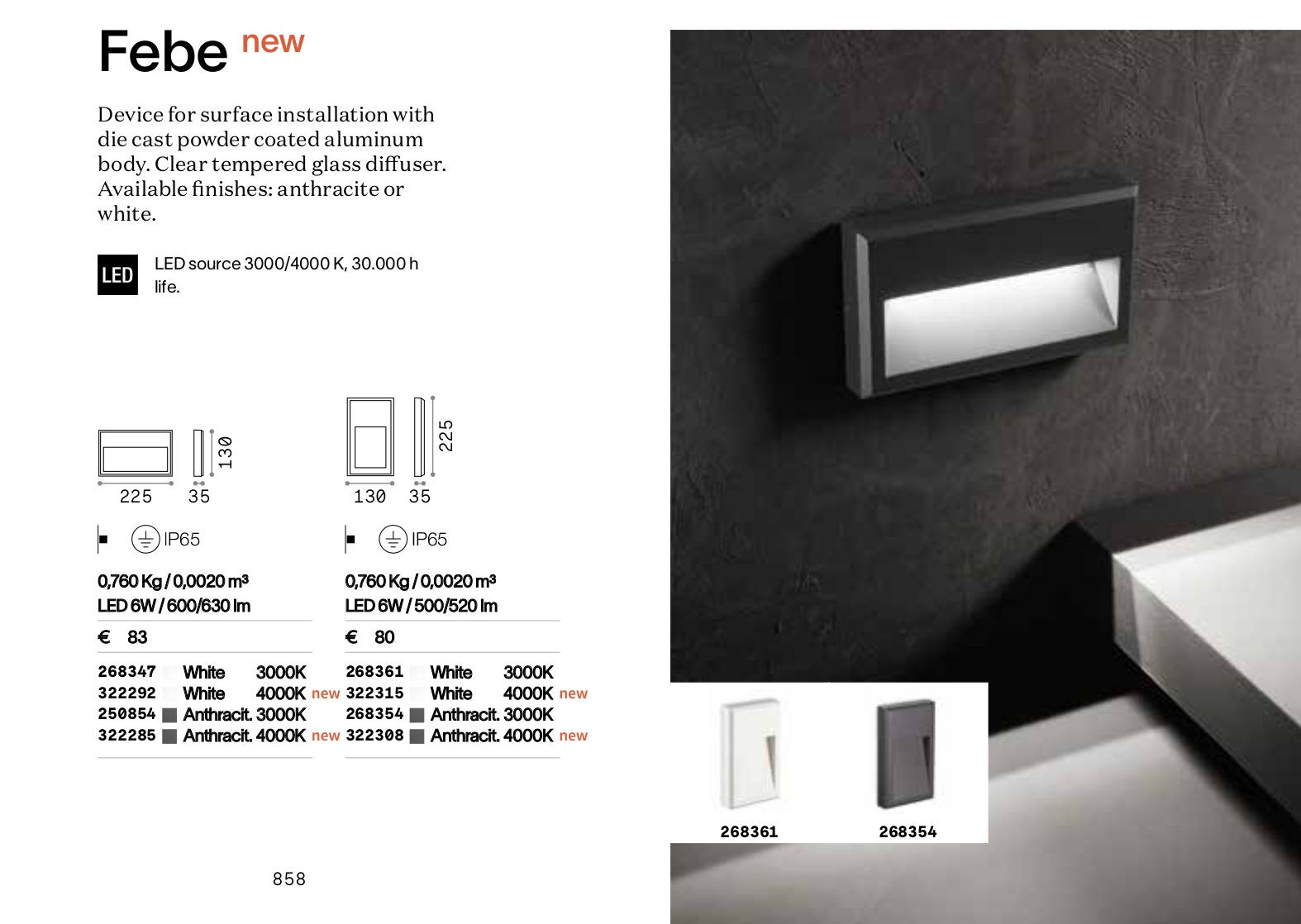 Осветителното тяло FEBE-1 AP BIANCO 4000K ще осигури комфорт и естетика във всяко помещение, в което се постави. Цялостната визия и дизайн на лампата и вложените в изработката й материали, като лят алуминий с прахово нанесено покритие в бял цвят, дифузер от прозрачно закалено стъкло, ще допринесат за един неповторим стил. Благодарение на дългогодишния опит, качествените материали и строгия контрол на качеството на изработка на производителя Ideal-Lux (Италия), FEBE-1 AP BIANCO 4000K е на високо европейско ниво.
