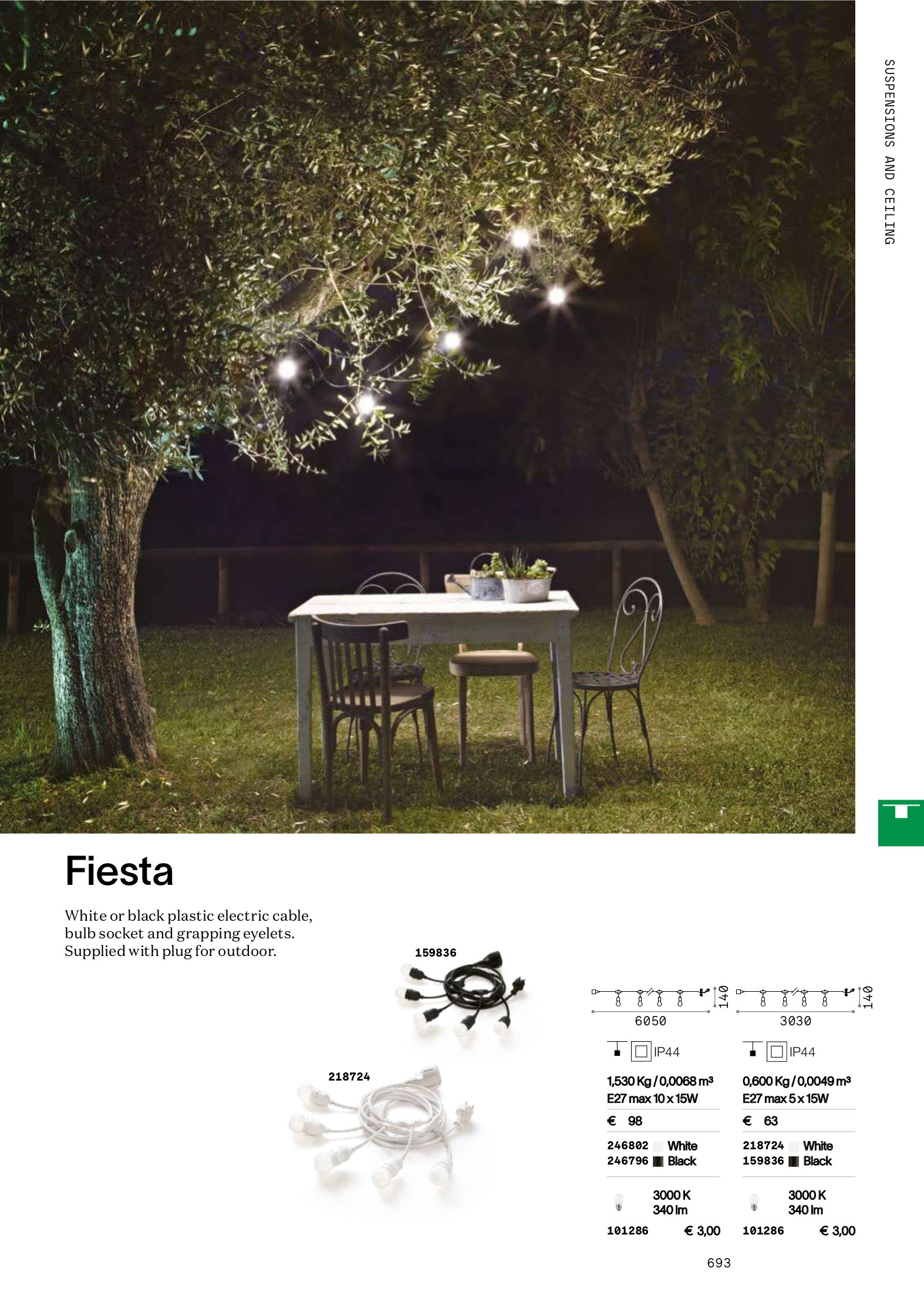 Осветителното тяло ^FIESTA SP10 BIANCO ще осигури комфорт и естетика във всяко помещение, в което се постави. Цялостната визия и дизайн на лампата и вложените в изработката й материали, като бял PVC кабел с щепсел и 10 фасунги, щипки за захващане, ще допринесат за един неповторим стил. Благодарение на дългогодишния опит, качествените материали и строгия контрол на качеството на изработка на производителя Ideal-Lux (Италия), ^FIESTA SP10 BIANCO е на високо европейско ниво.