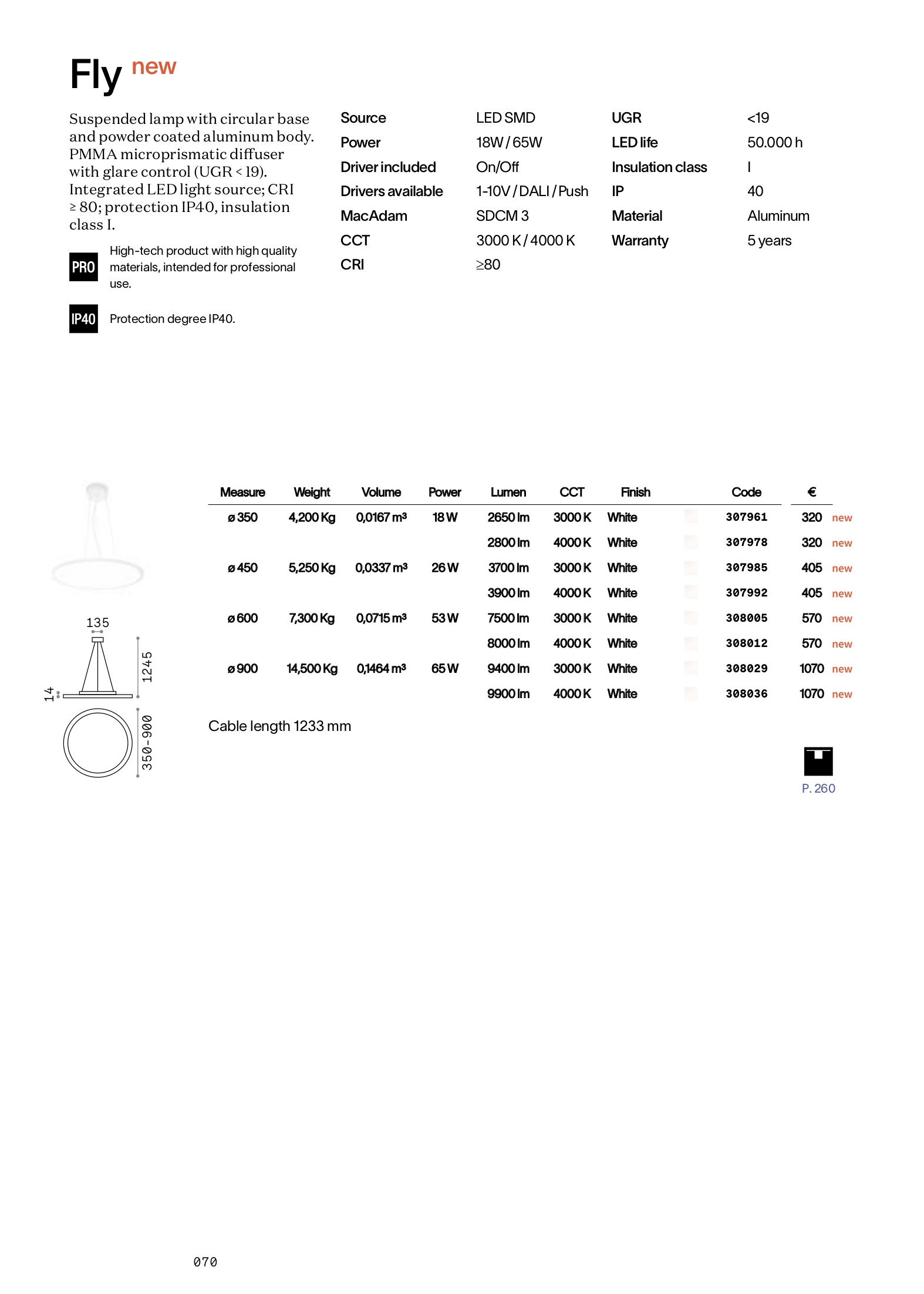Осветителното тяло ^FLY SLIM SP D45 4000K представлява пендел в съвременен стил. ^FLY SLIM SP D45 4000K е от категорията осветителни тела и е подходящо за осветяване на различни помещения и пространства като: всекидневна / хол, спалня, кухня, трапезария, коридор, антре, офис.