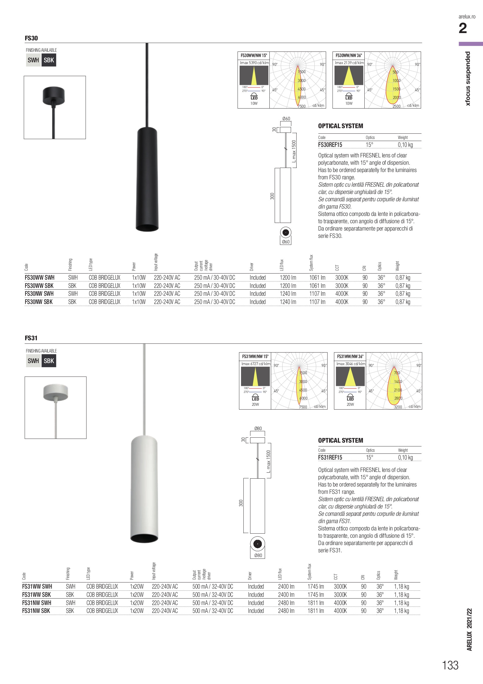 Лед пендел FS31NW SWH ще осигури комфорт и естетика във всяко помещение, в което се постави. Цялостната визия и дизайн на led лампата и вложените в изработката й материали, като екструдиран алуминий с електростатично положено покритие в пясъчно бяло, декоративен челен пръстен от алуминий в черно, ще допринесат за един неповторим стил. Благодарение на дългогодишния опит в производството на лед осветление, качествените материали и строгия контрол на качеството на изработка на дизайнерската линия Redo Arelux на производителя Redo (Румъния), FS31NW SWH е на високо европейско ниво.