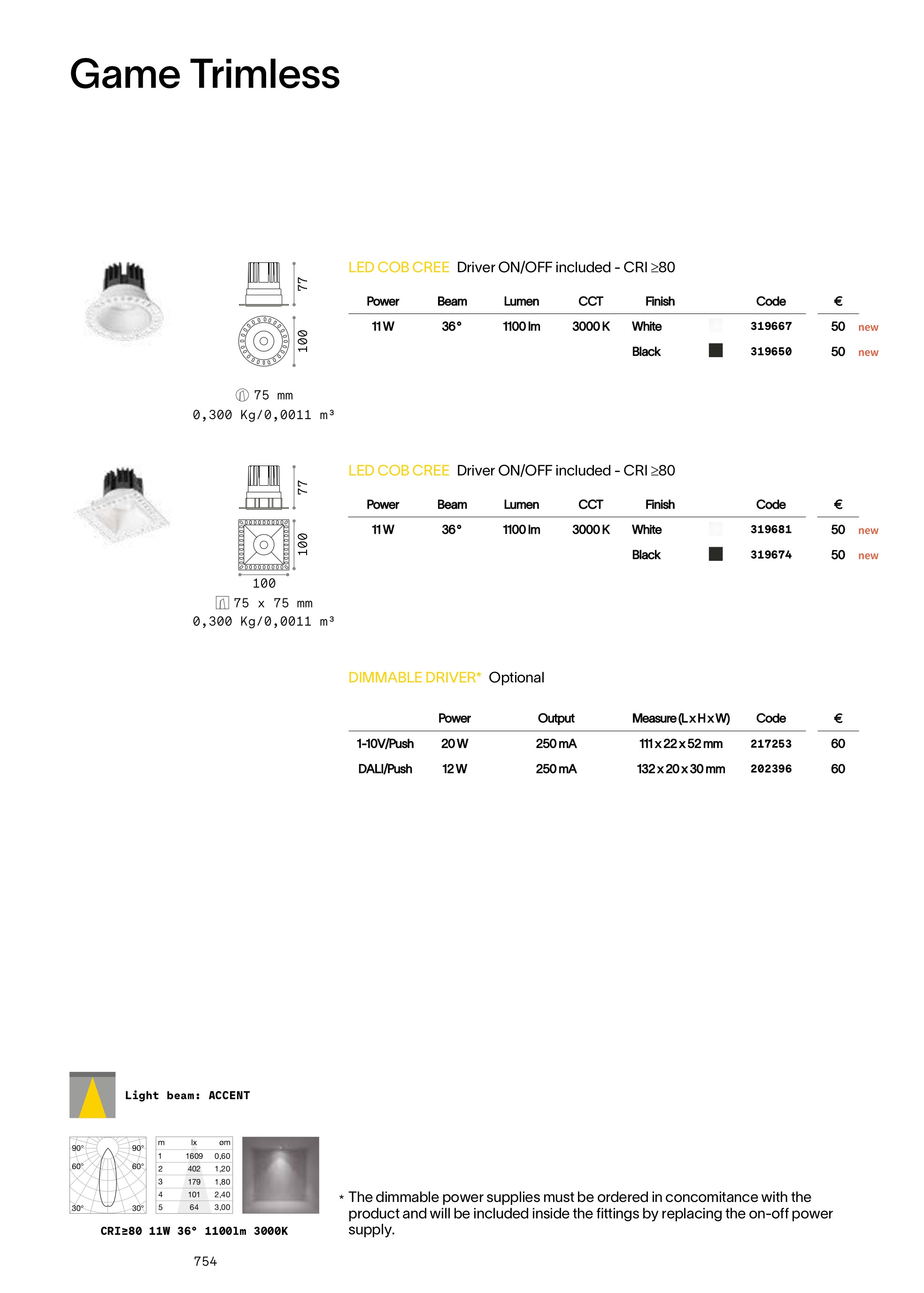 луничка / луна GAME TRIMLESS ROUND 11W 3000K WH