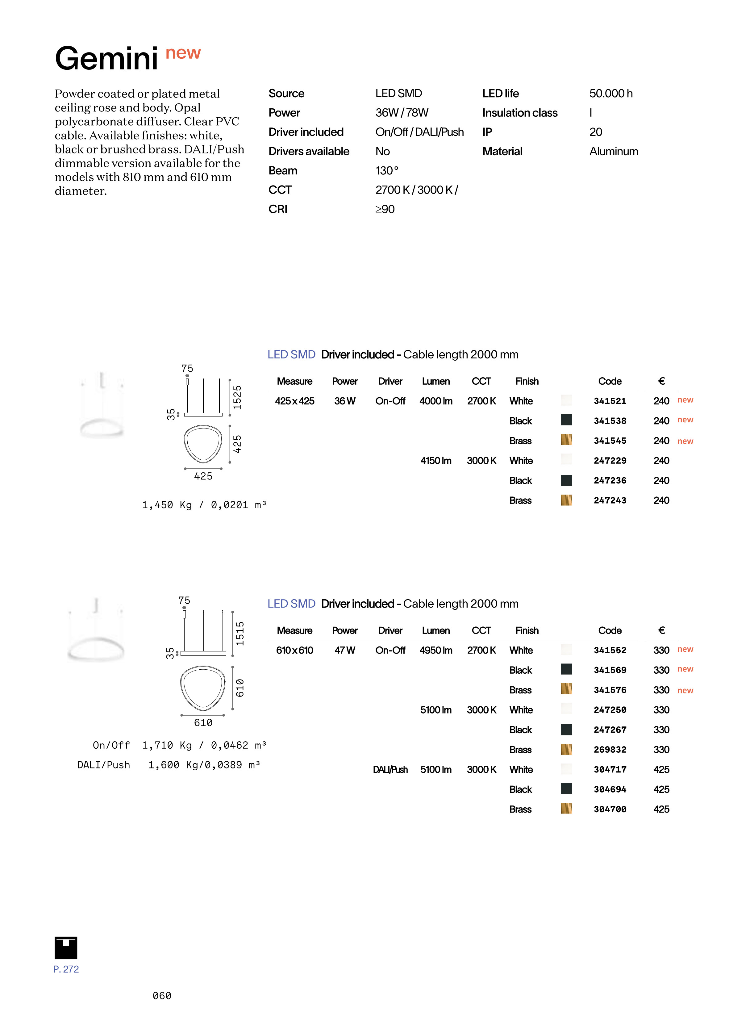полилей GEMINI SP D061 DALI/PUSH OTTONE