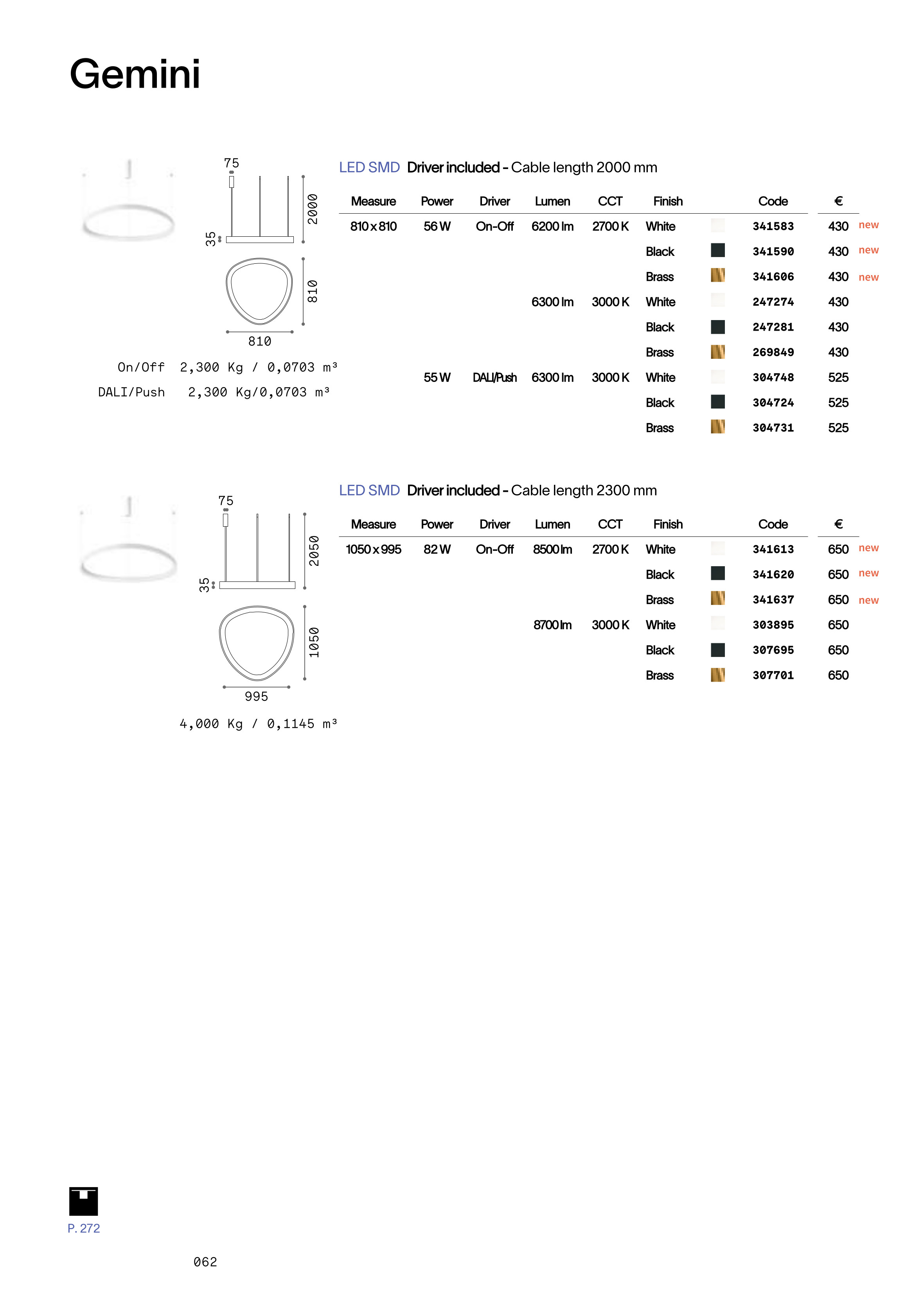 полилей GEMINI SP D061 DALI/PUSH OTTONE