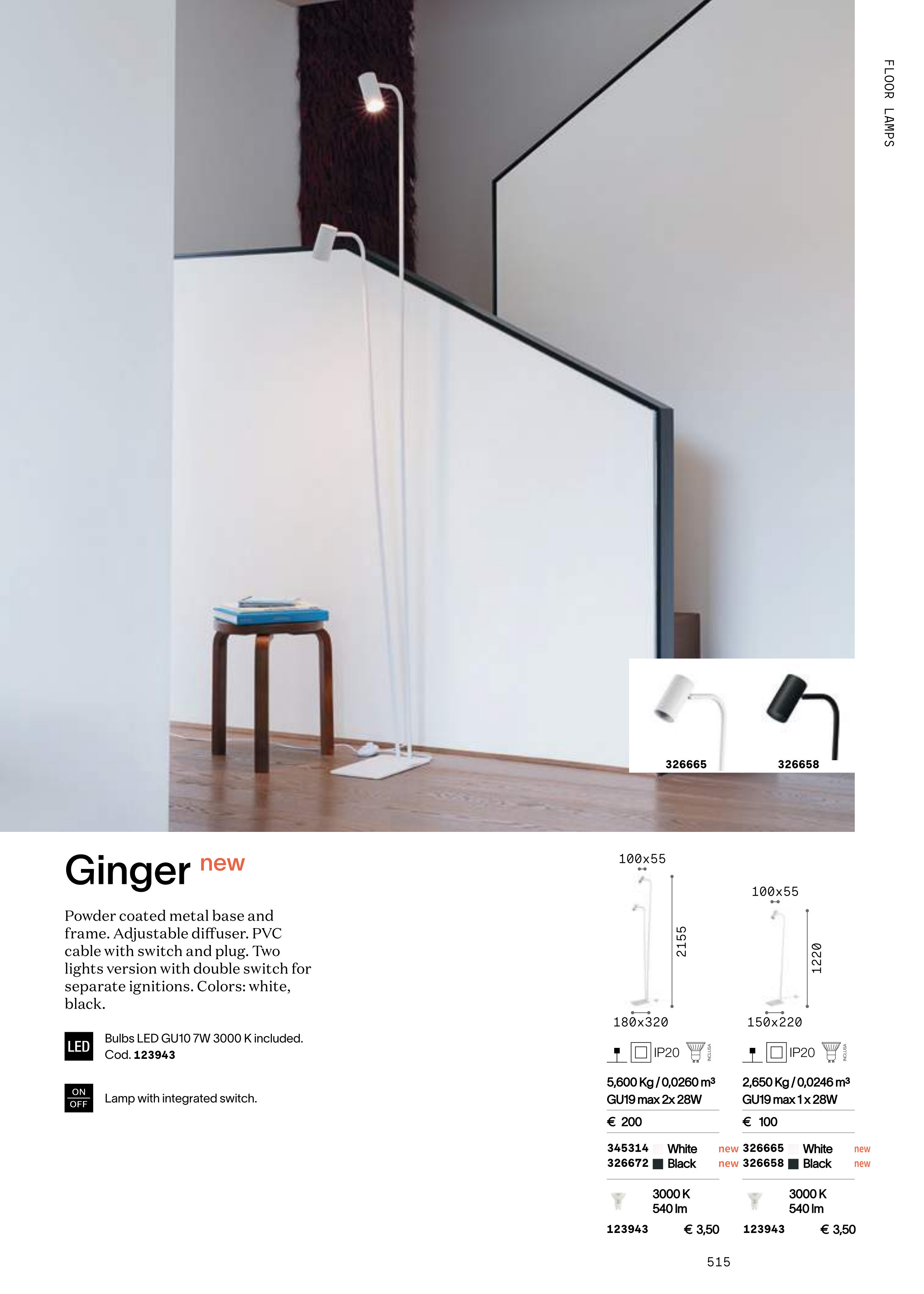 Осветителното тяло GINGER PT2 BIANCO ще осигури комфорт и естетика във всяко помещение, в което се постави. Цялостната визия и дизайн на лампата и вложените в изработката й материали, като метал в бял цвят, регулируем дифузьор, PVC кабел с двоен ключ и щепсел, ще допринесат за един неповторим стил. Благодарение на дългогодишния опит, качествените материали и строгия контрол на качеството на изработка на производителя Ideal-Lux (Италия), GINGER PT2 BIANCO е на високо европейско ниво.