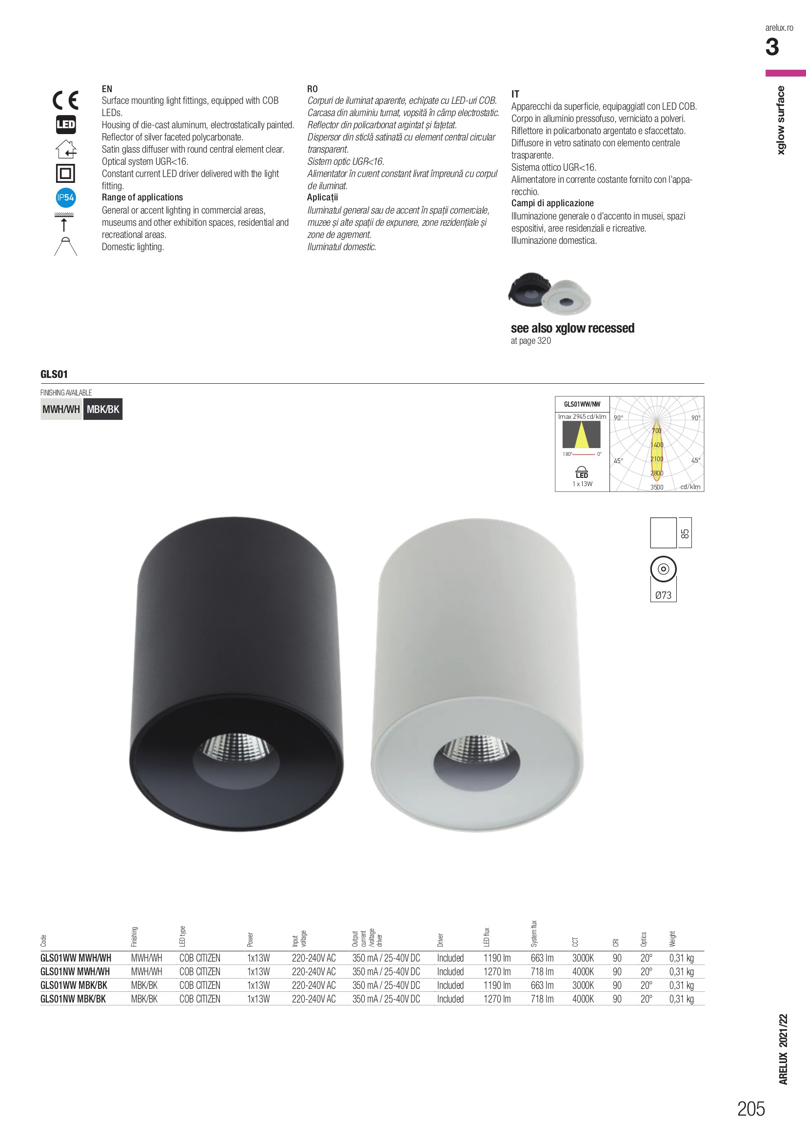 Осветителното тяло GLS01WW MBK/BK ще осигури комфорт и естетика във всяко помещение, в което се постави. Цялостната визия и дизайн на лампата и вложените в изработката й материали, като корпус от отлят алуминий в матово черен цвят, рефлектор от сребрист сатениран поликарбонат, разсейвател от сатенирано стъкло с кръгъл централен прозрачен елемен, ще допринесат за един неповторим стил. Благодарение на дългогодишния опит, качествените материали и строгия контрол на качеството на изработка на дизайнерската линия Redo Arelux на производителя Redo (Румъния), GLS01WW MBK/BK е на високо европейско ниво.