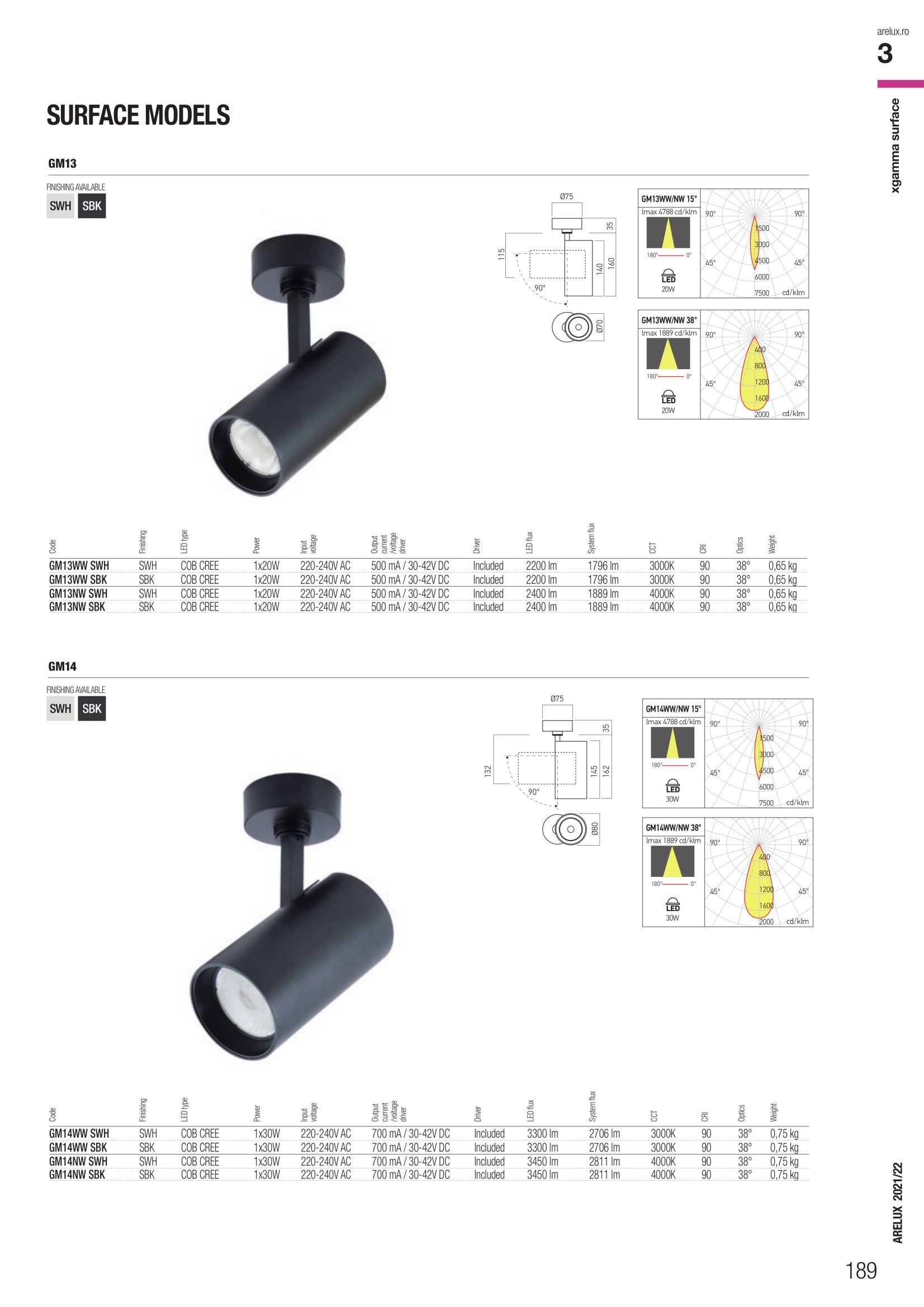 Лед спот лампа GM14WW SBK ще осигури комфорт и естетика във всяко помещение, в което се постави. Цялостната визия и дизайн на led лампата и вложените в изработката й материали, като екструдиран алуминий в цвят пясъчно черно, декоративен пръстен от отлят под налягане алуминий в черно, шарнир позволяващ промяна на ориентацията 0° - 355° хоризонтално и 0° - 90° вертикално, оптична система с леща FRESNEL от PMMA с 38° ъгъл на дисперсия, ще допринесат за един неповторим стил. Благодарение на дългогодишния опит в производството на лед осветление, качествените материали и строгия контрол на качеството на изработка на дизайнерската линия Redo Arelux на производителя Redo (Румъния), GM14WW SBK е на високо европейско ниво.