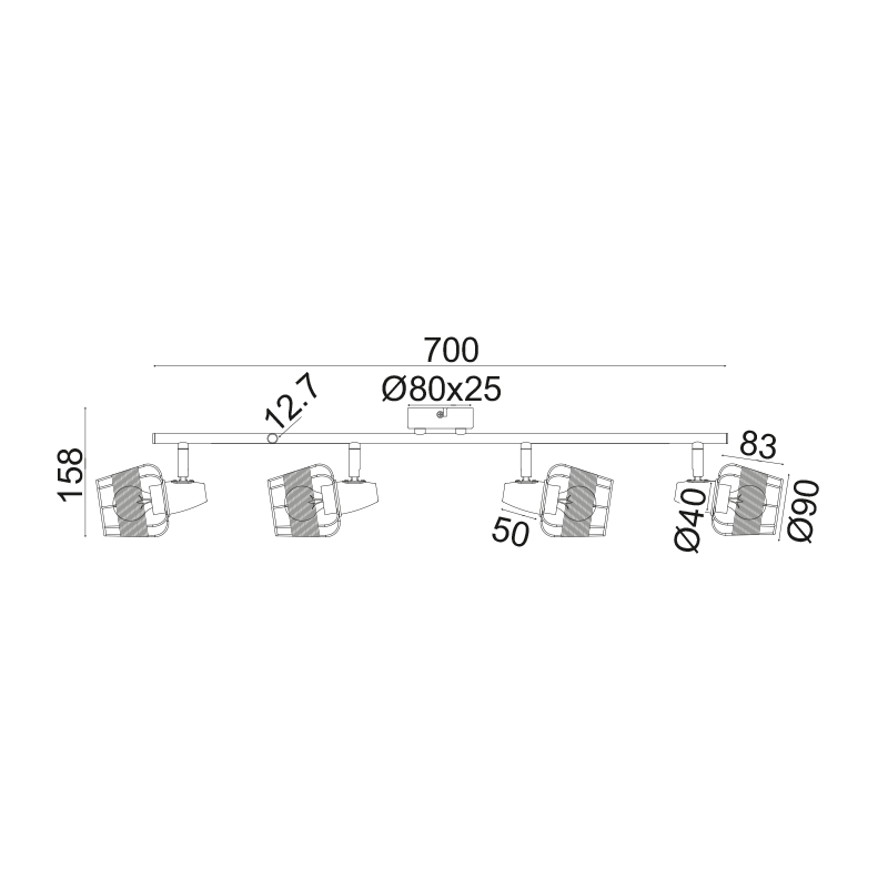 Ел. мощност 3 х 40 W Размери 47см x 15.8см x Ф9см Производител ACA-Lighting, Гърция