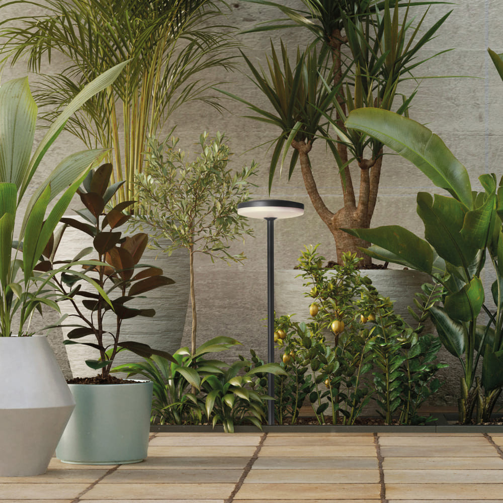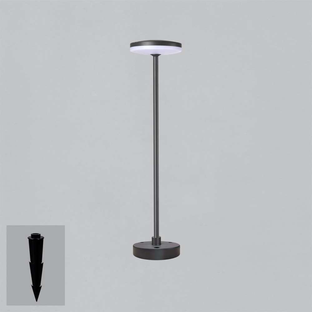 алуминий в цвят антрацит, конектор с IP65 е включен в комплекта, както и основа за равна повърхност и шпил за почва