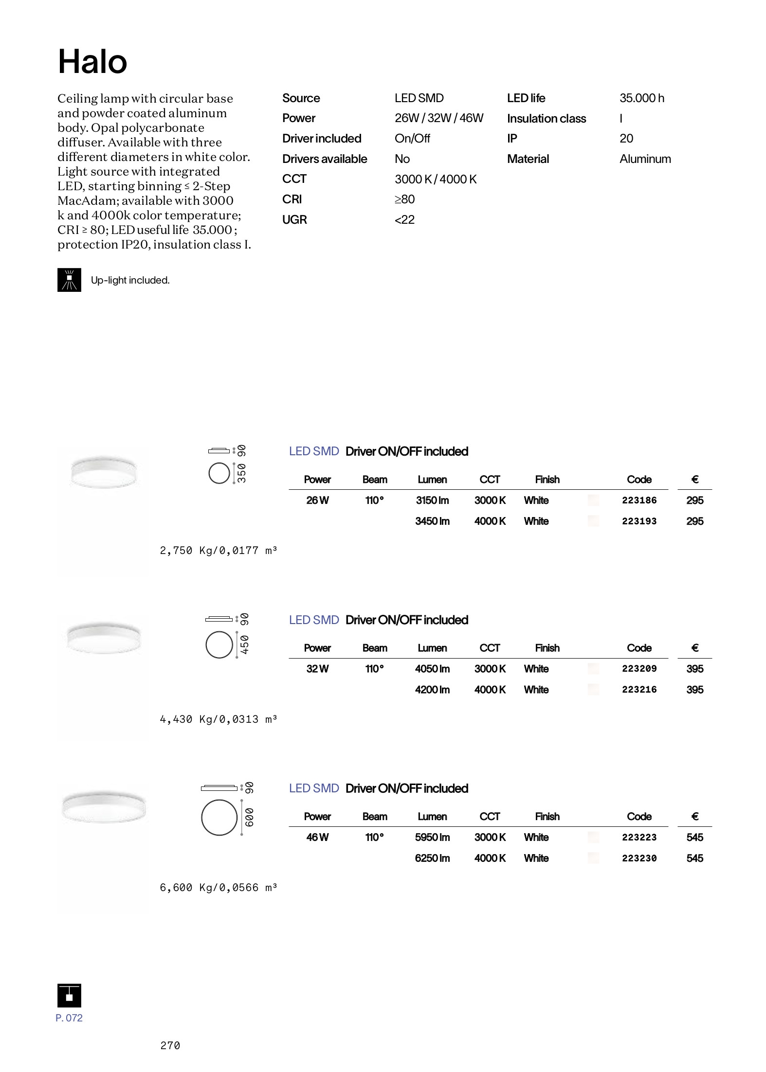 Осветителното тяло HALO PL1 D45 3000K представлява лед плафон в съвременен стил. HALO PL1 D45 3000K е от категорията и е подходящо за осветяване на различни помещения и пространства като: всекидневна / хол, спалня, кухня, трапезария, коридор, антре, стълбище, офис.