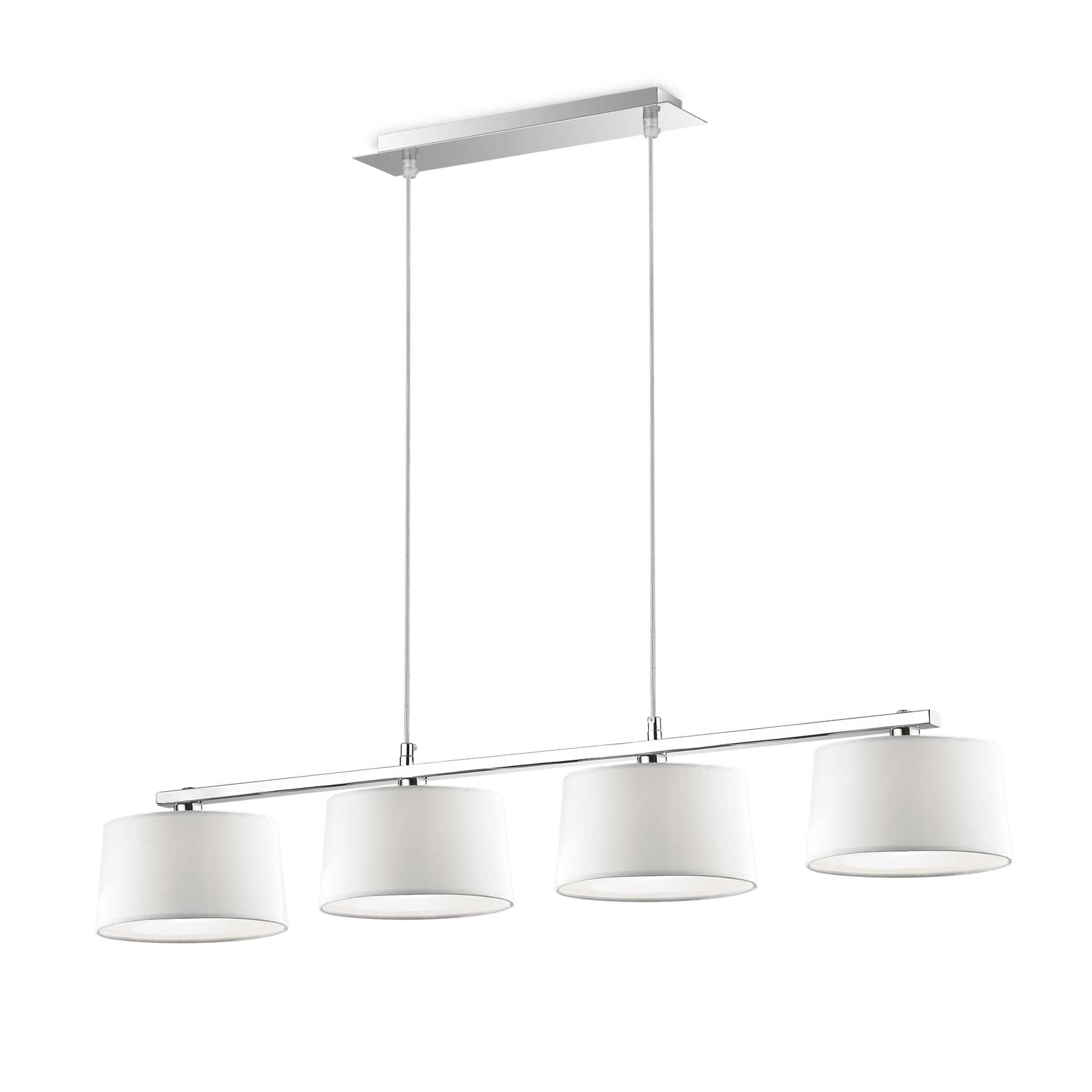 Лед полилей @HILTON SP4 LINEAR BIANCO (SB4) ще осигури комфорт и естетика във всяко помещение, в което се постави. Цялостната визия и дизайн на led лампата и вложените в изработката й материали, като хромиран метал, абажур от PVC фолио, покрит с текстил в бяло, прозрачен, пясъкоструйно обработен стъклен долен дифузер, кабели и обтегачи с регулируема дължина, ще допринесат за един неповторим стил. Благодарение на дългогодишния опит в производството на лед осветление, качествените материали и строгия контрол на качеството на изработка на производителя Ideal-Lux (Италия), @HILTON SP4 LINEAR BIANCO (SB4) е на високо европейско ниво.