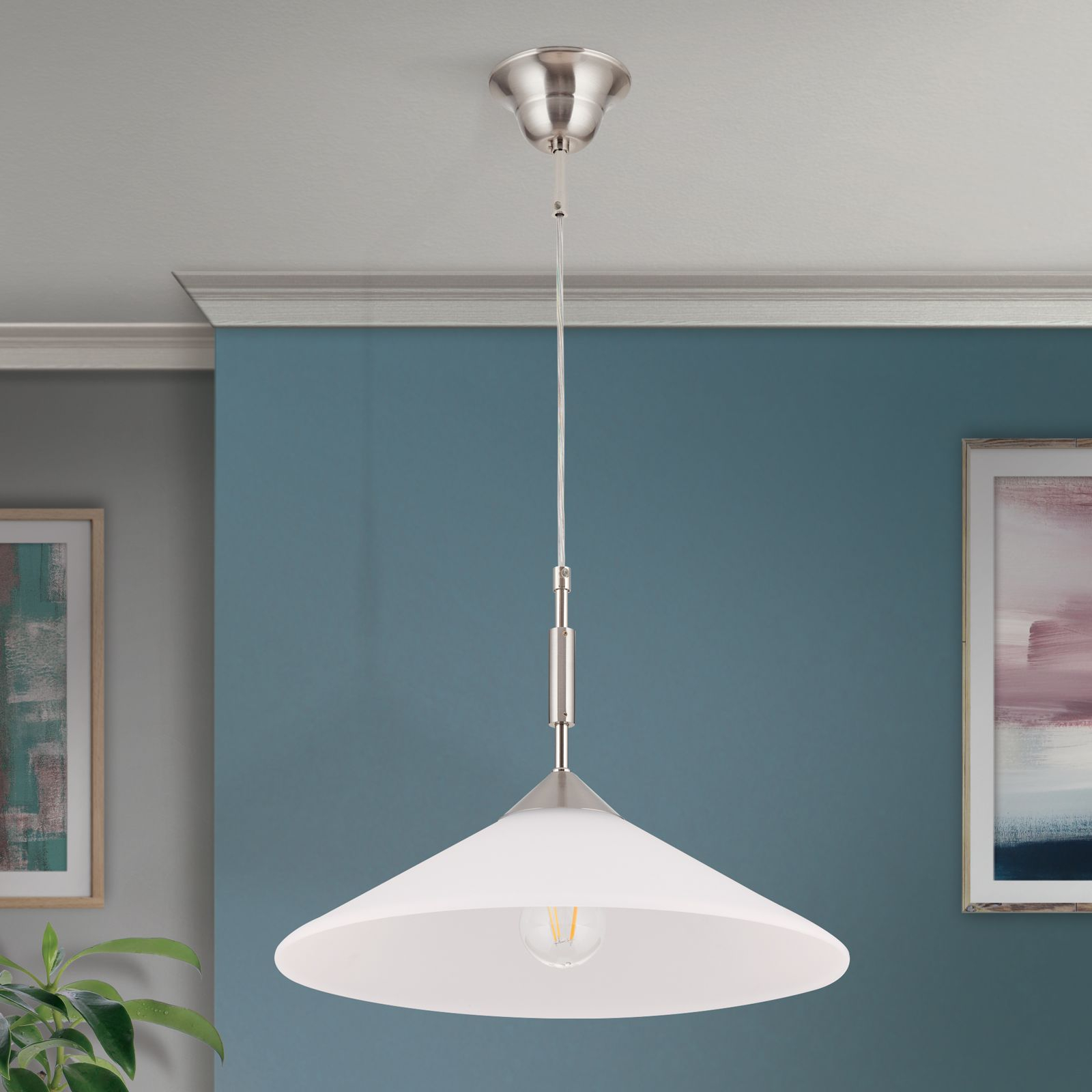 Магазини за осветителни тела ОРИОН представят осветителното тяло HL 6-1404/1 satin/447 opal (1xE27), което представлява пендел, създадено в съвременен стил. Като елемент от категорията това осветително тяло е подходящо за различни помещения и пространства във Вашия дом или офис, като е изключително подходящо например за всекидневна / хол, спалня, кухня, трапезария, коридор, антре, офис.