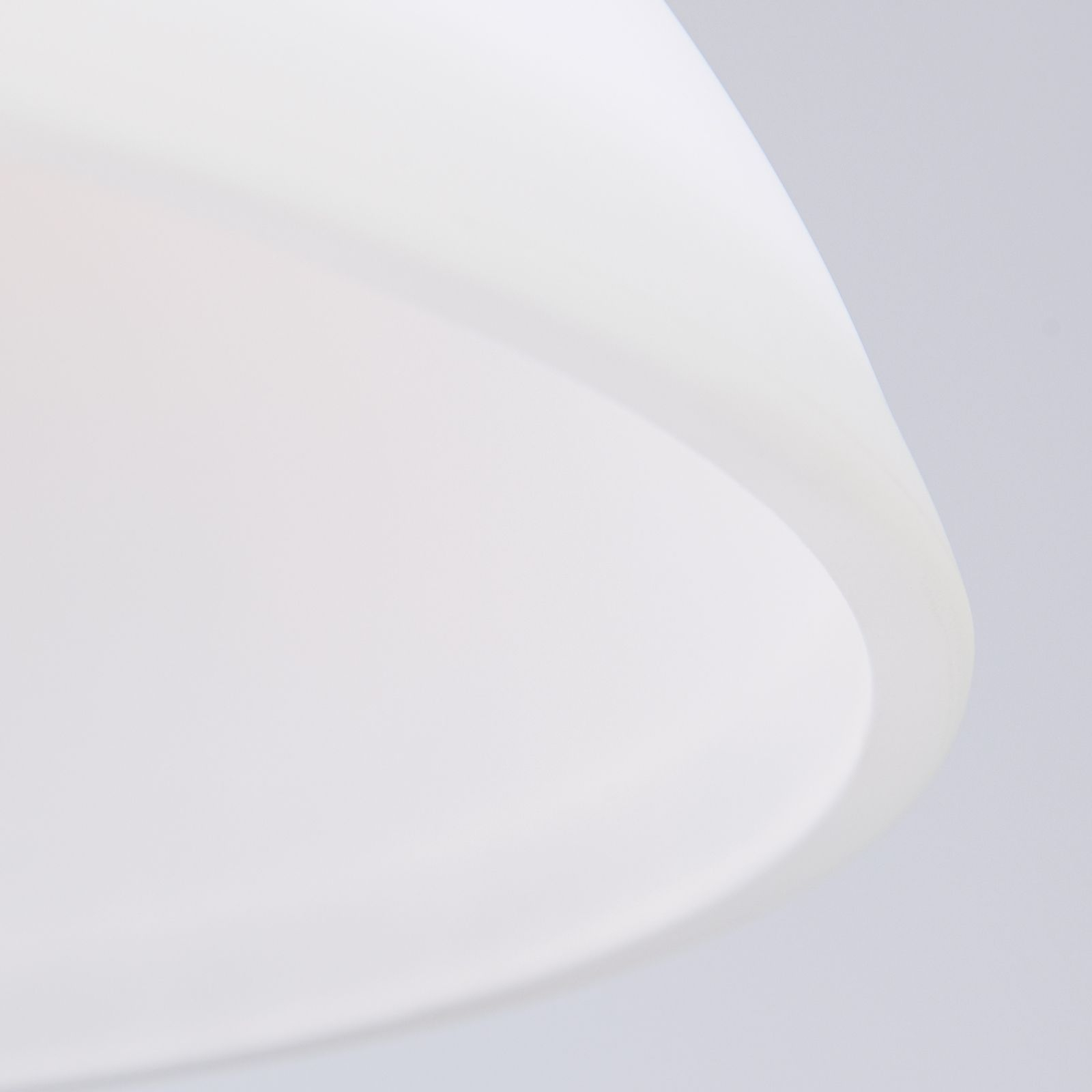 Стилът и естетиката на обстановката ще се обогатят благодарение, както на цялостната визия и дизайн на осветителното тяло, така и на вложените в изработката му, качествени материали, като: стомана в цвят сатен хром, стъкло в цвят бял опал.