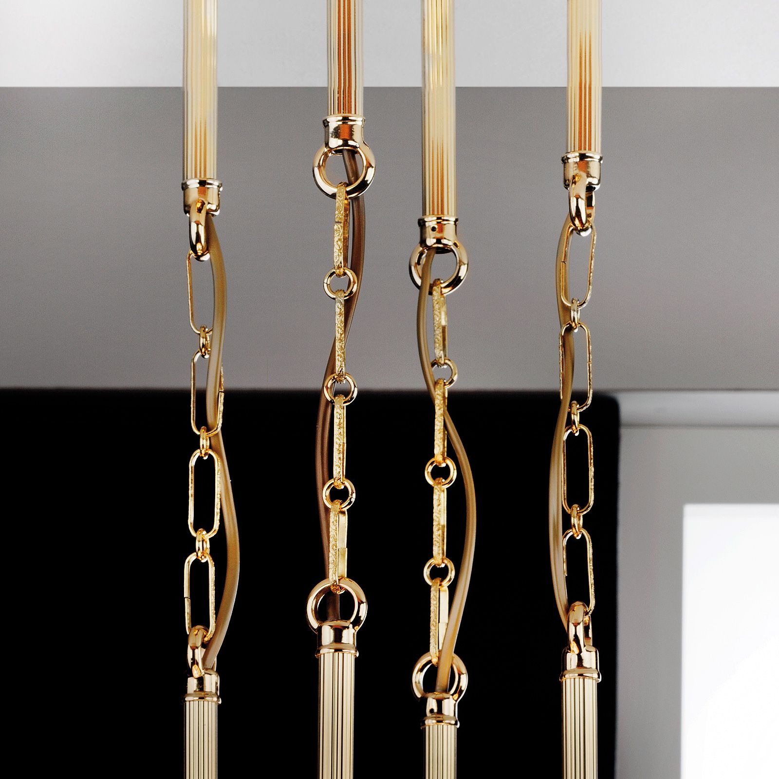 За стила и естетиката на интериора допринасят, както цялостната визия и дизайн на осветителното тяло, така и вложените от производителя в изработката висококачествени материали, като стомана с покритие от блестящ месинг, стъкло в цвят блестящ опал.
