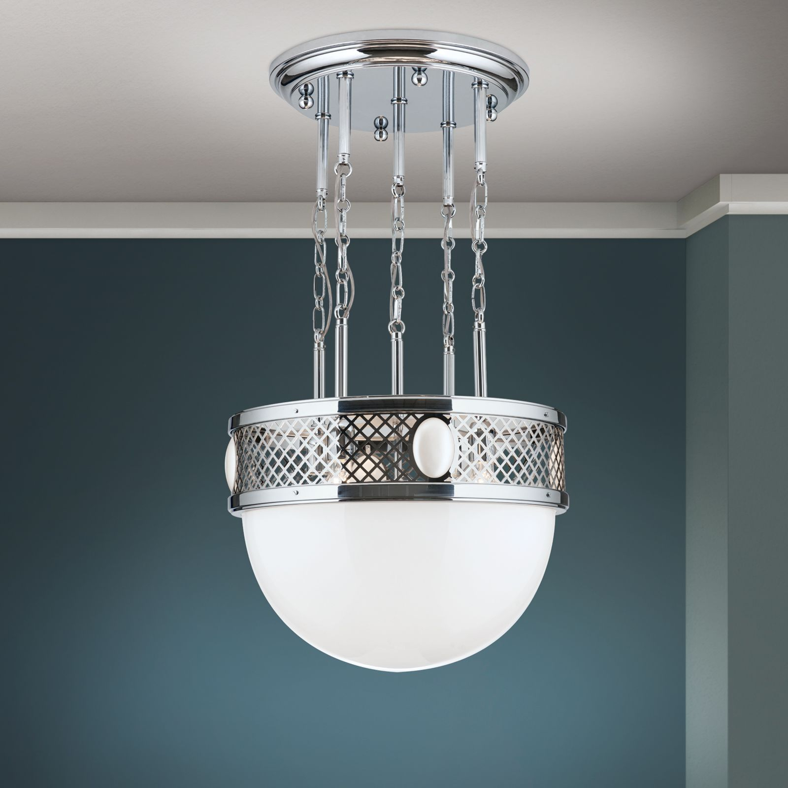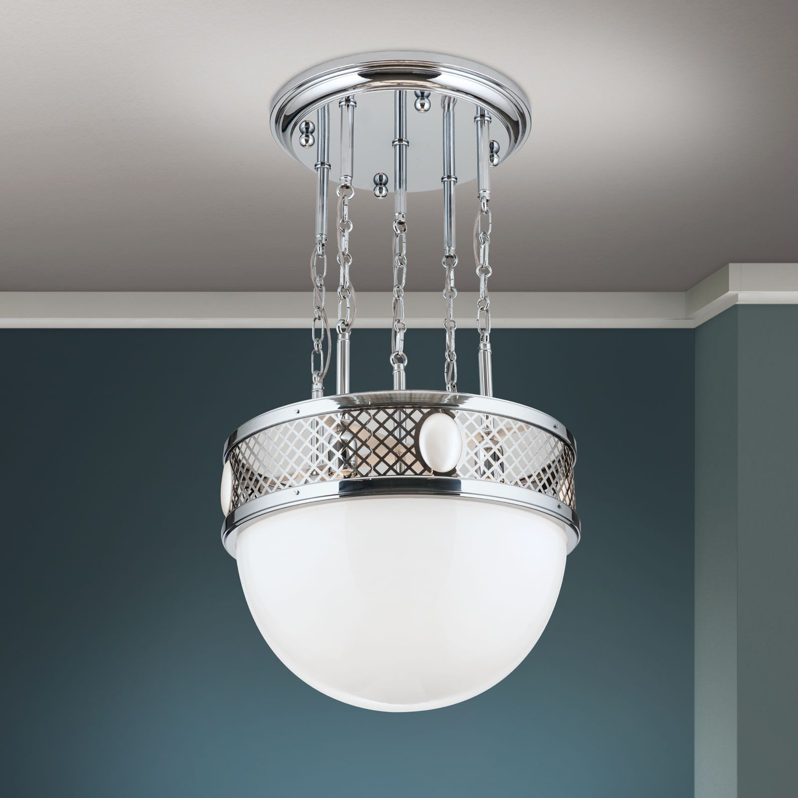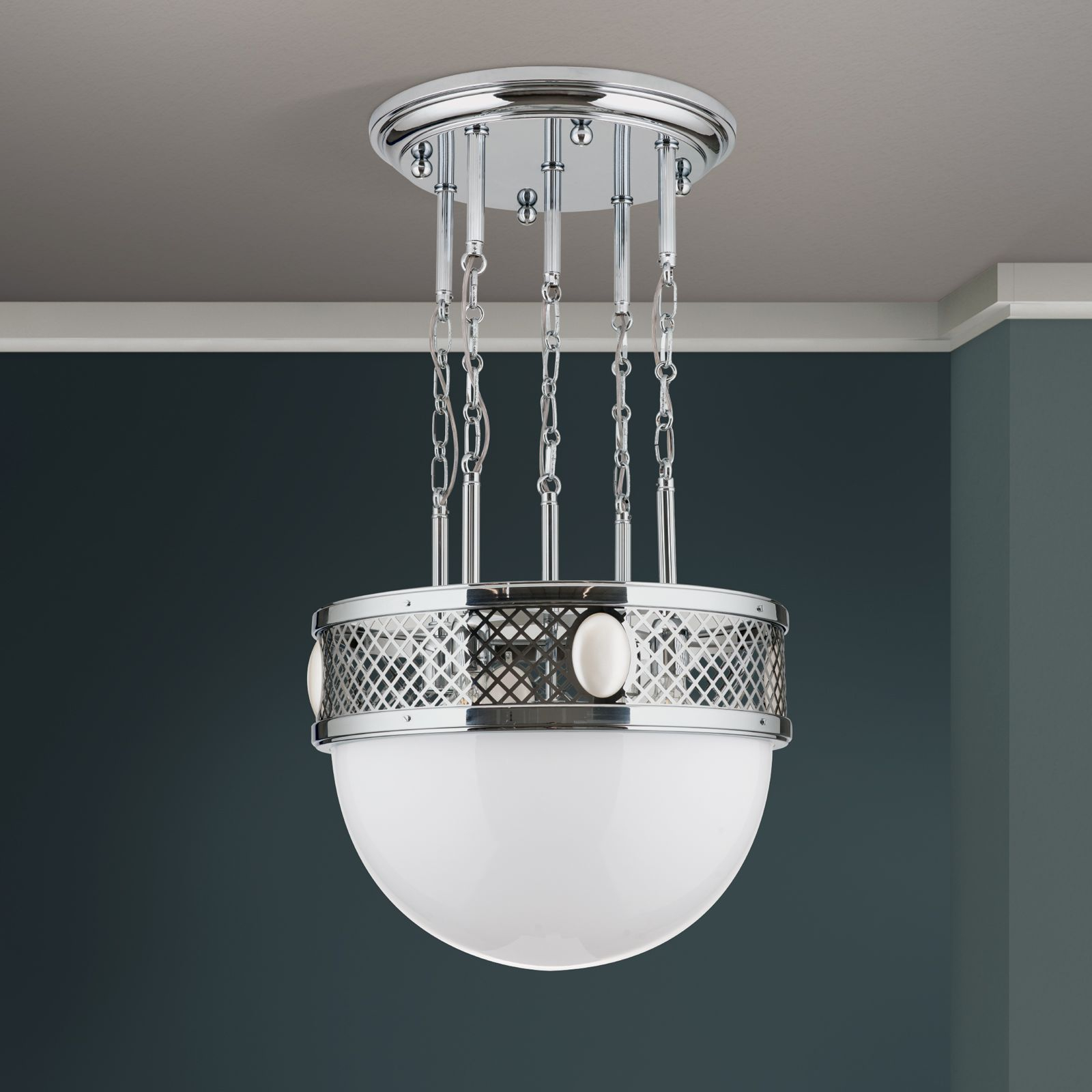 масивен месинг с покритие от блестящ никел, стъкло в цвят лъскав бял опал