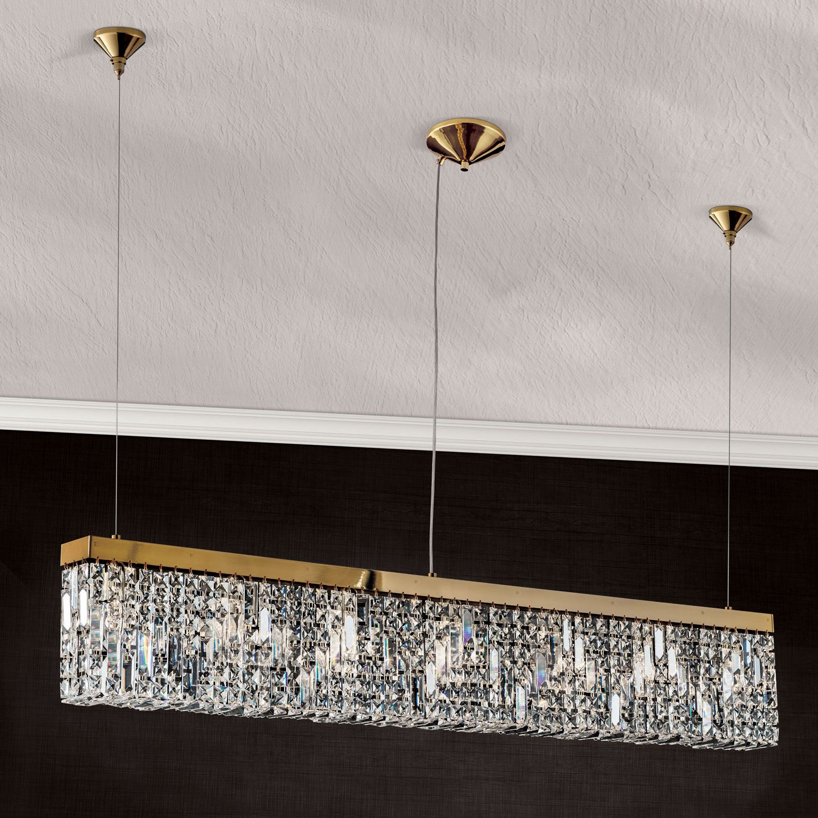 За стила и естетиката на интериора допринасят, както цялостната визия и дизайн на осветителното тяло, така и вложените от производителя в изработката висококачествени материали, като масивен месинг с 24 карата златно покритие, прозрачно кристално стъкло.