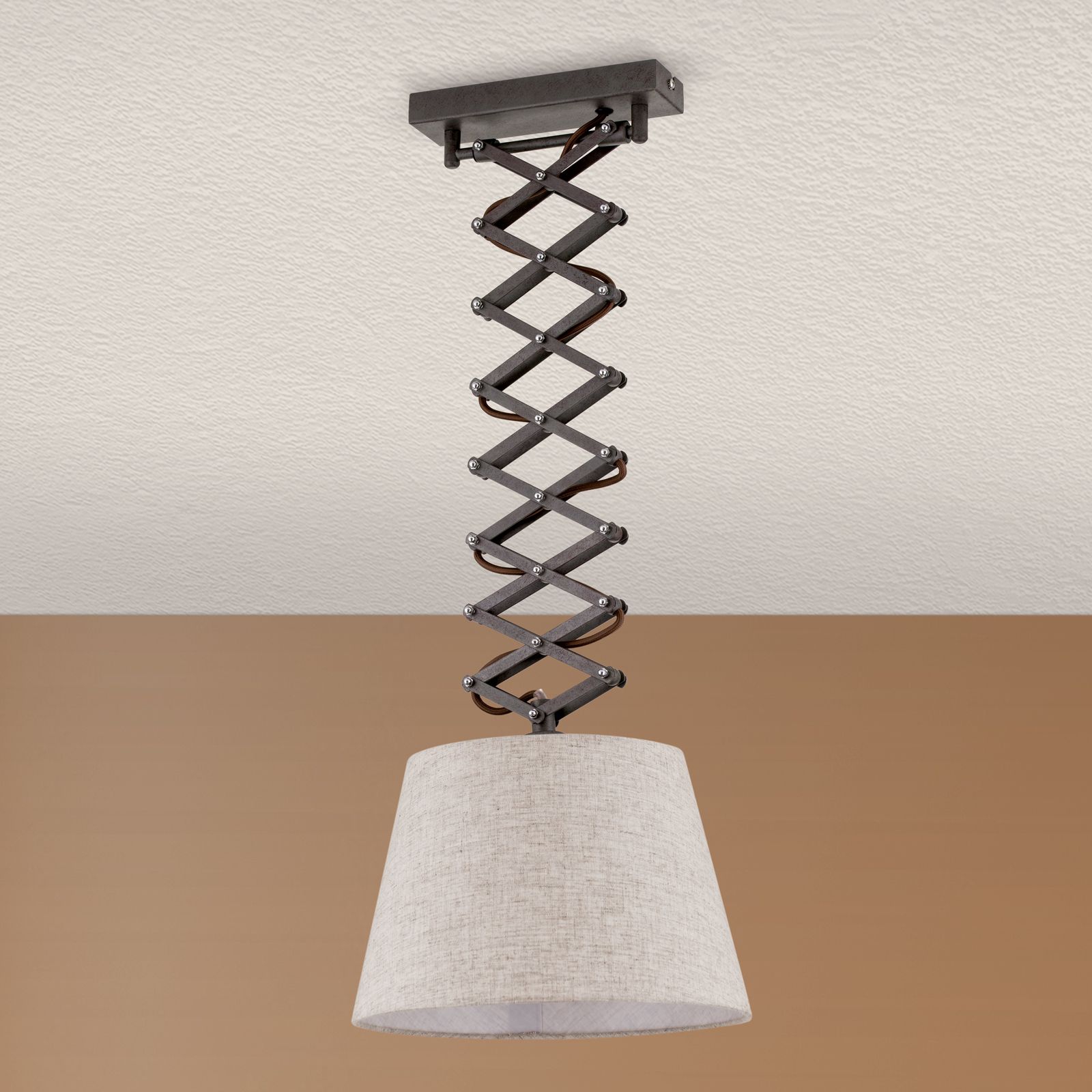 стоманено рамо с променлива дължина в антично черно, абажур от текстил в цвят бежов растер