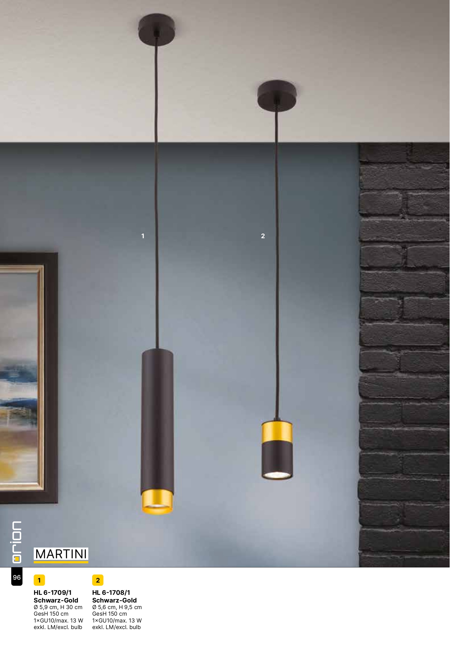 Осветителното тяло HL 6-1709/1 schwarz-gold (exkl GU10/13W) представлява пендел в съвременен стил. HL 6-1709/1 schwarz-gold (exkl GU10/13W) е от категорията осветителни тела и е подходящо за осветяване на различни помещения и пространства като: всекидневна / хол, спалня, кухня, трапезария, коридор, антре, офис.