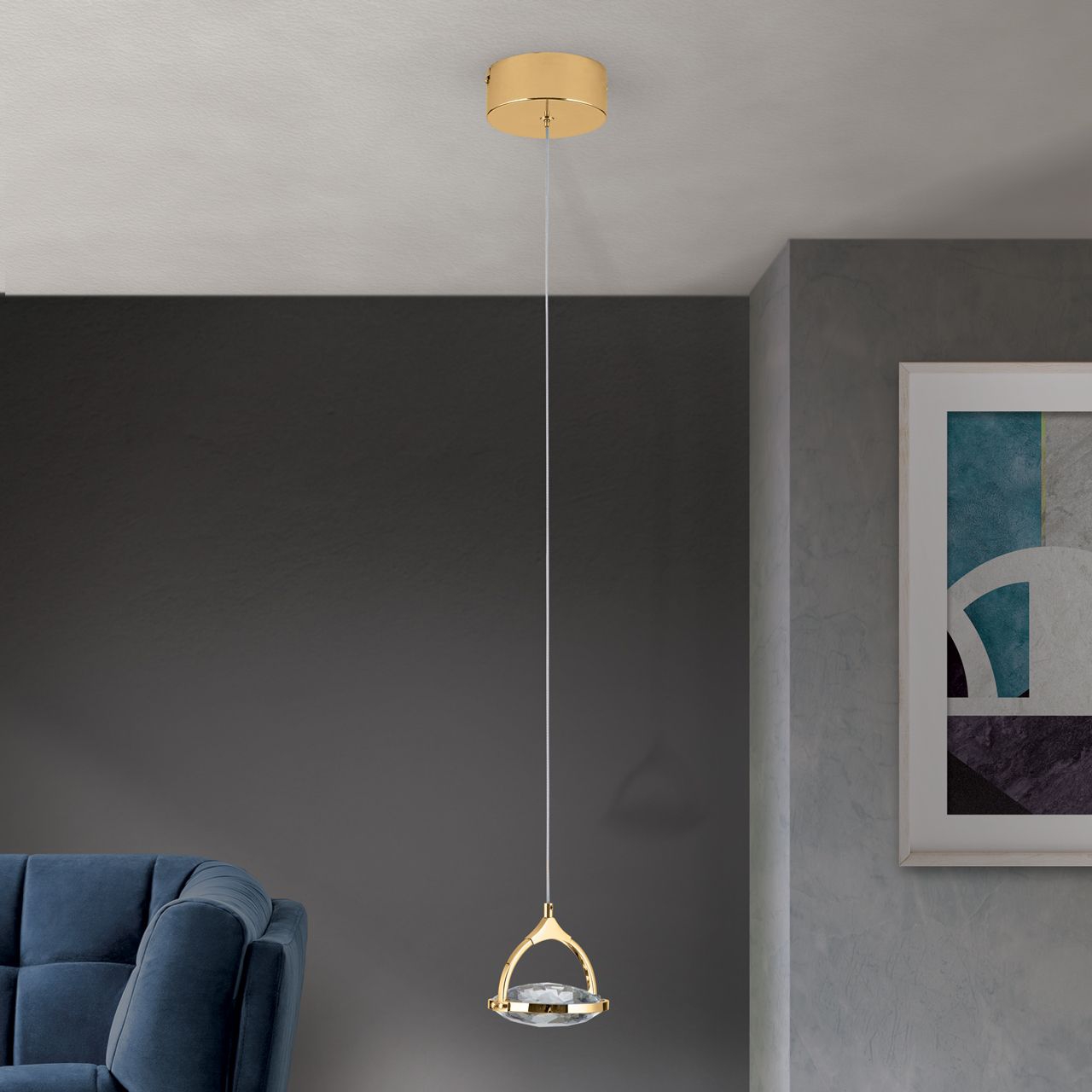 Осветителното тяло HL 6-1710/1 gold (LED8W/300lm/3000K) представлява пендел в съвременен, дизайнерски стил. HL 6-1710/1 gold (LED8W/300lm/3000K) е от категорията осветителни тела и е подходящо за осветяване на различни помещения и пространства като: всекидневна / хол, спалня, кухня, трапезария, коридор, антре, офис.
