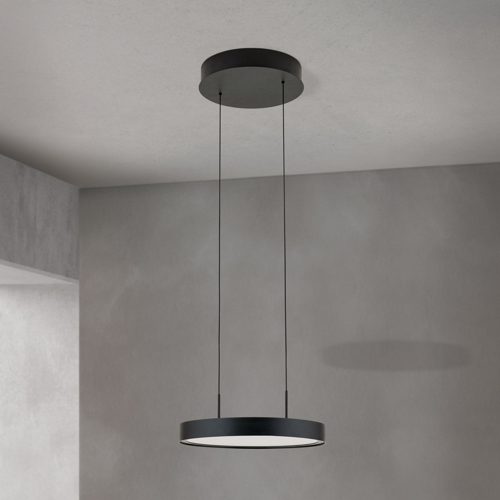 метал в цвят матово черно, полимер в бяло, светлина нагоре и надолу, димиране, функция плавно регулиране на височината на осветителното тяло по време на работа