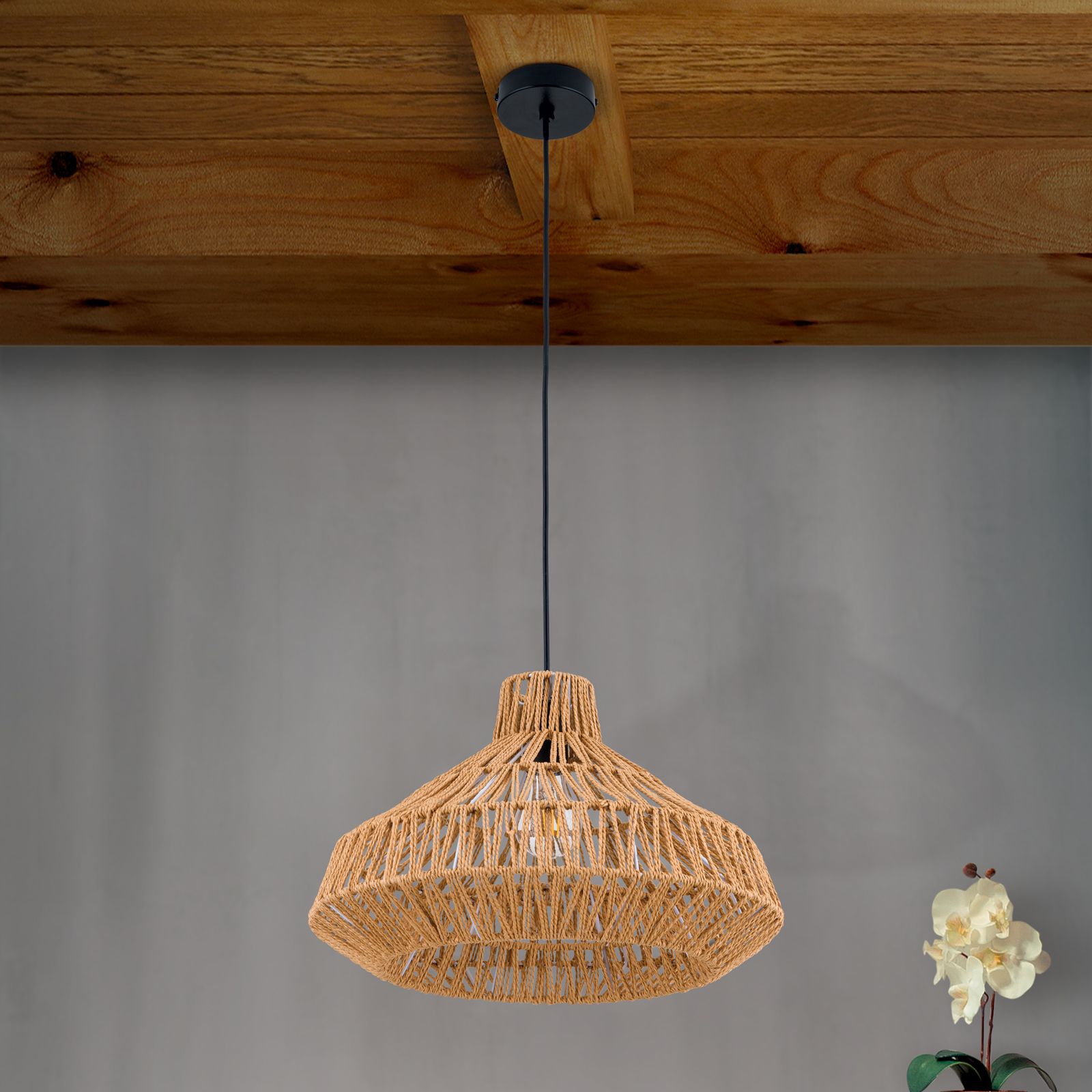 Стилът и естетиката на обстановката ще се обогатят благодарение, както на цялостната визия и дизайн на осветителното тяло, така и на вложените в изработката му, качествени материали, като: стомана в матово черен цвят, коноп в естествен цвят.