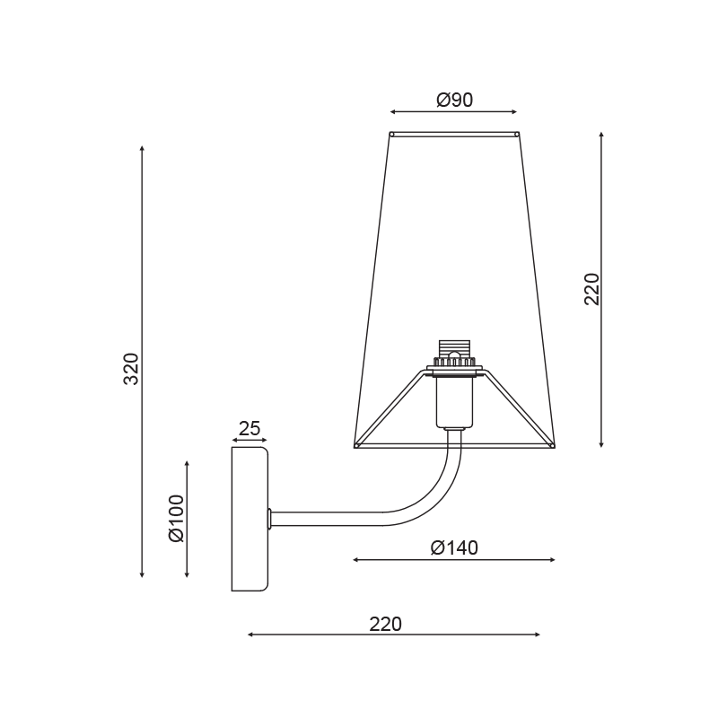 Ел. мощност 2 х 40 W Размери 22см x 33см x Ф14см Производител ACA-Lighting, Гърция