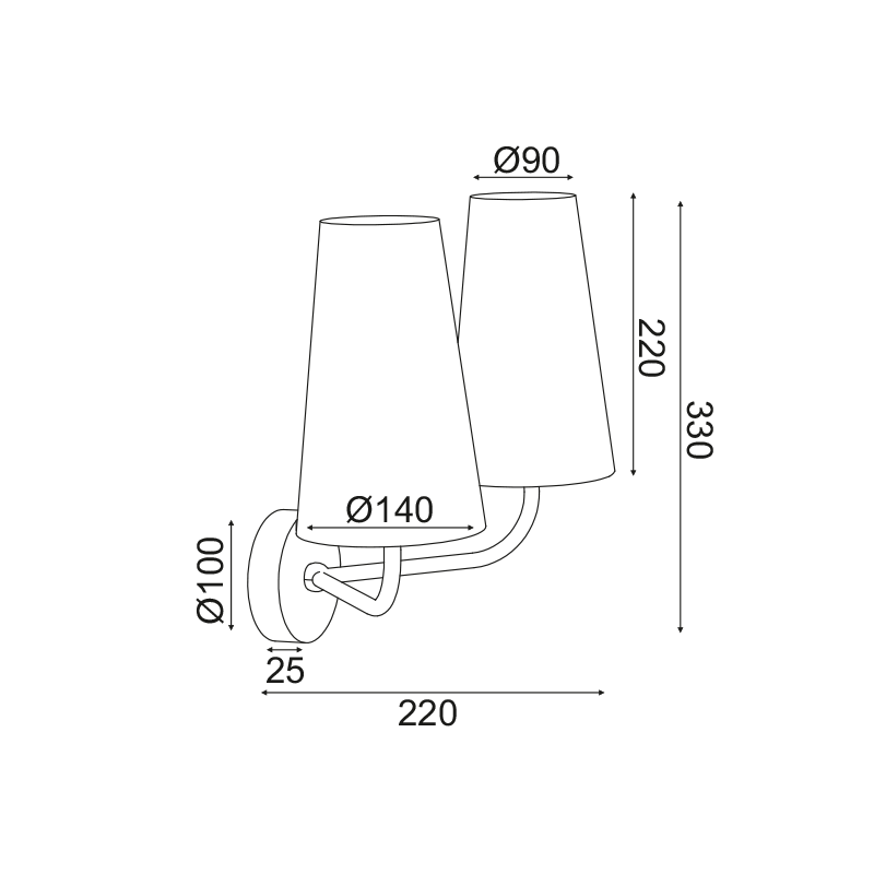 Ел. мощност 1 х 40 W Размери 22см x 32см x Ф14см Производител ACA-Lighting, Гърция