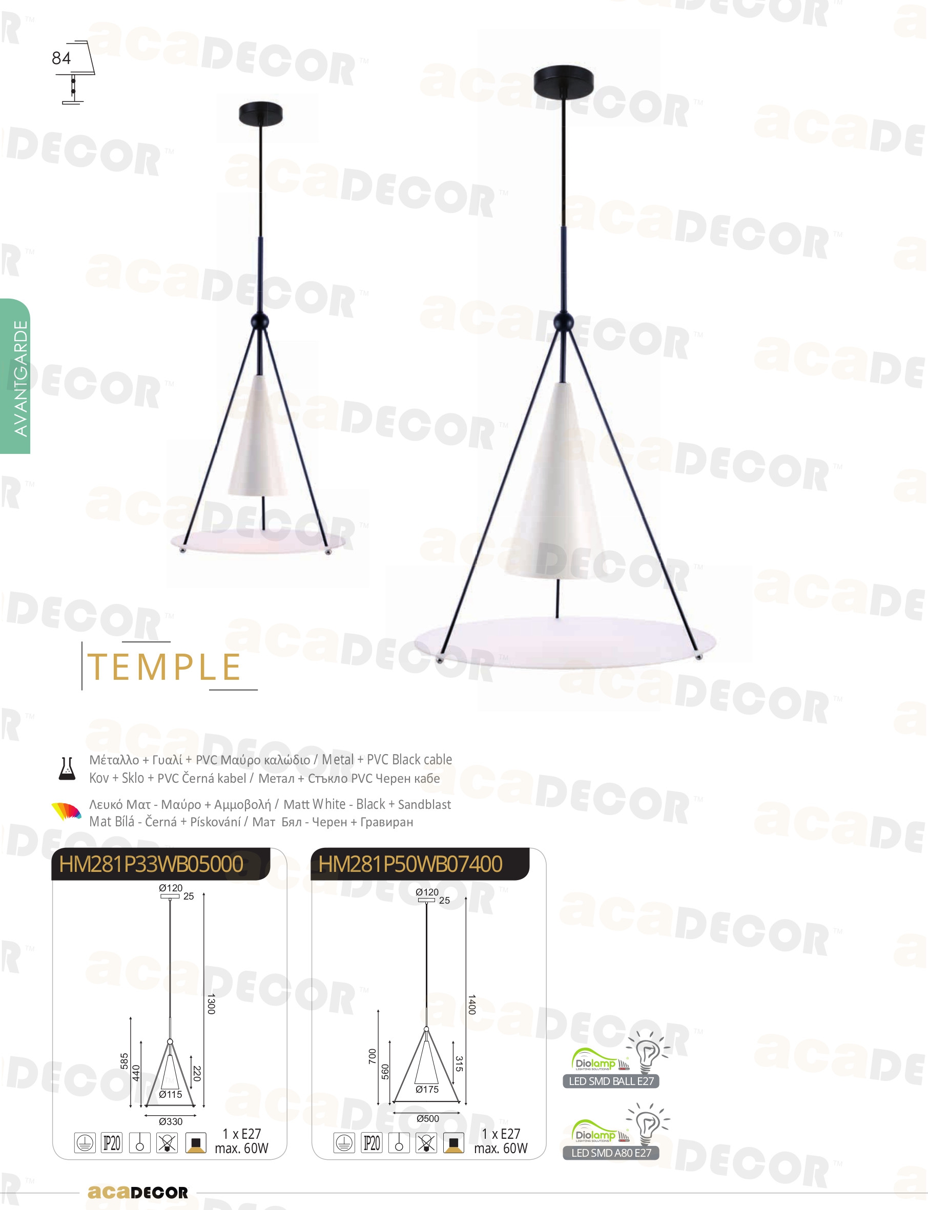 Осветителното тяло HM281P33WB ще осигури комфорт и естетика във всяко помещение, в което се постави. Цялостната визия и дизайн на лампата и вложените в изработката й материали, като метал в цвят бял мат, стъкло в бяло, полимер в бяло, черен PVC кабел, ще допринесат за един неповторим стил. Благодарение на дългогодишния опит, качествените материали и строгия контрол на качеството на изработка на производителя ACA-Lighting (Гърция), HM281P33WB е на високо европейско ниво.