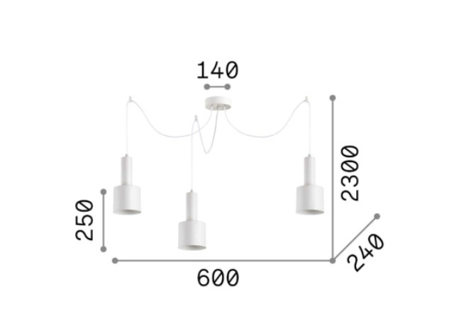 Ел. мощност 3 х 60 W Размери 60см x 24см x 230см Производител Ideal-Lux, Италия