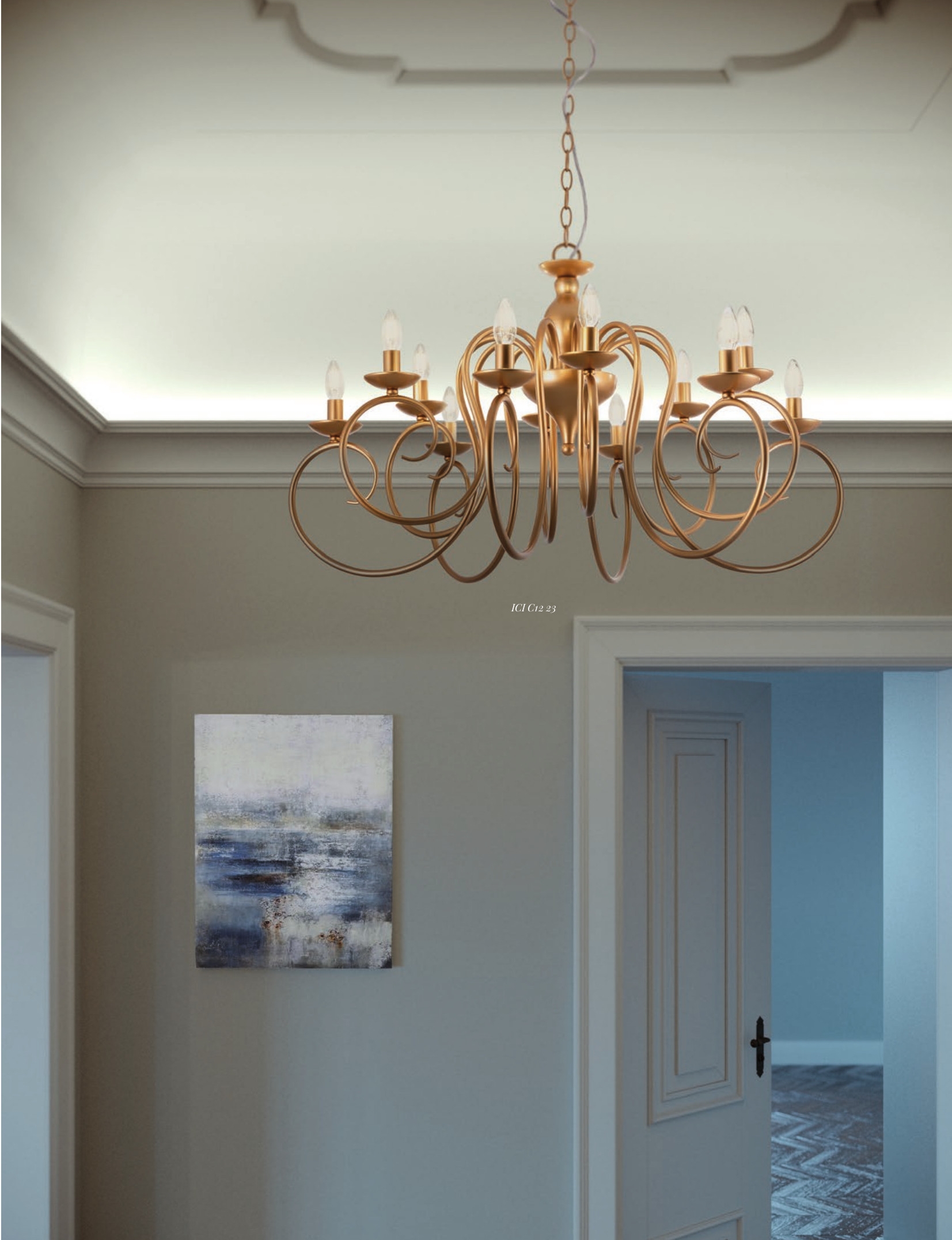Осветителното тяло ICI C12 23 представлява полилей в класически стил. ICI C12 23 е от категорията осветителни тела и е подходящо за осветяване на различни помещения и пространства като: всекидневна / хол, спалня, кухня, трапезария, офис.
