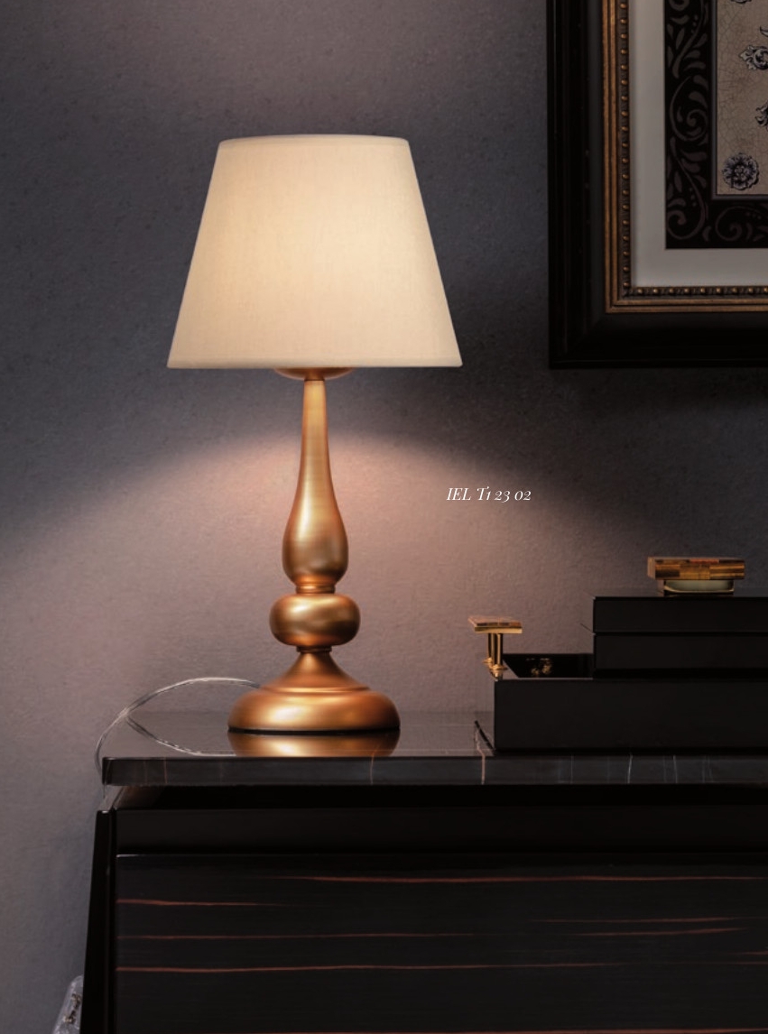 Осветителното тяло IEL T1 23 02 ще осигури комфорт и естетика във всяко помещение, в което се постави. Цялостната визия и дизайн на лампата и вложените в изработката й материали, като метал в цвят бронз, шапка от текстил в цвят слонова кост, шапки в черно или бяло могат да се поръчат и отделно като допълнителна възможност за умножаване на цветовите комбинации, ще допринесат за един неповторим стил. Благодарение на дългогодишния опит, качествените материали и строгия контрол на качеството на изработка на дизайнерската линия Redo Incanti на производителя Redo (Румъния), IEL T1 23 02 е на високо европейско ниво.