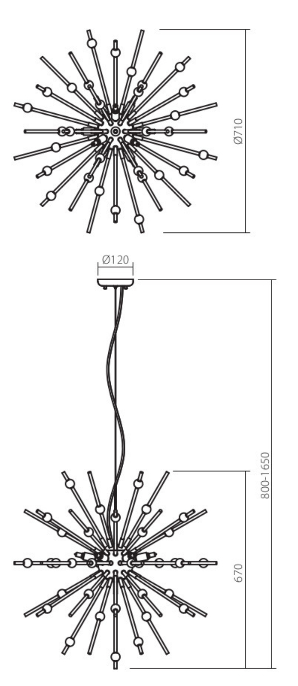 Ел. мощност 9 х 28 W Размери Ф67см x Ф71см x 80-165см Производител Redo, Румъния