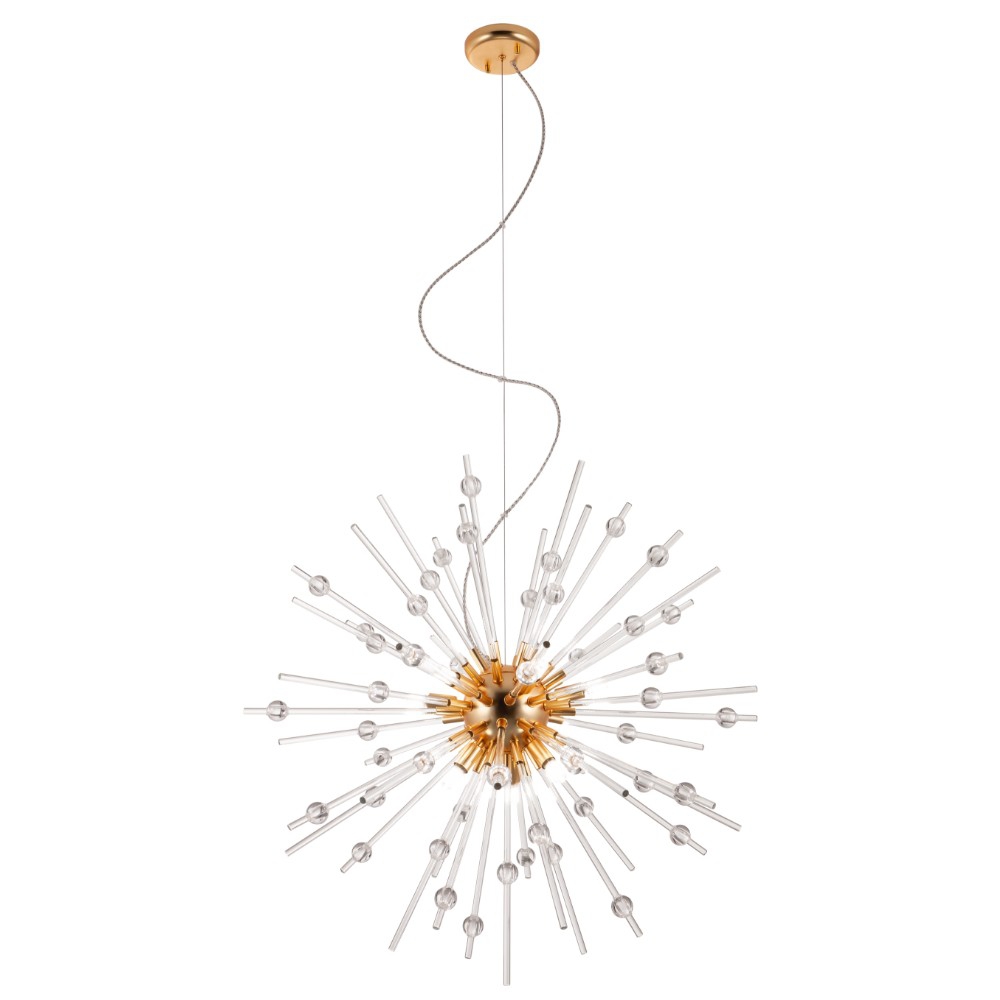 метал с покритие в цвят злато, шпилове от прозрачно стъкло, декоративни сфери от прозрачен акрил