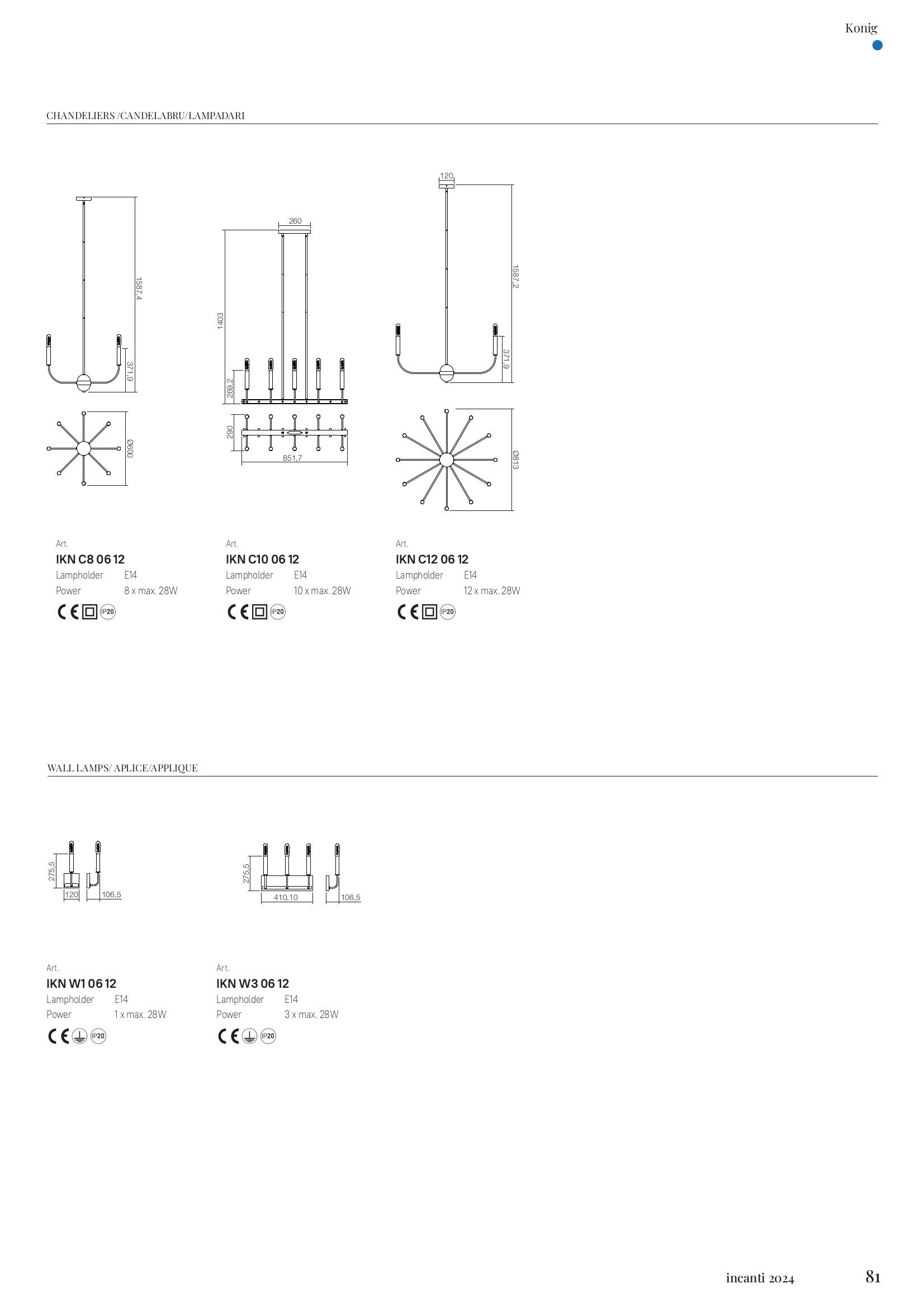 Осветителното тяло IKN C10 06 12 представлява полилей в съвременен стил. IKN C10 06 12 е от категорията осветителни тела и е подходящо за осветяване на различни помещения и пространства като: всекидневна / хол, спалня, кухня, трапезария, офис.