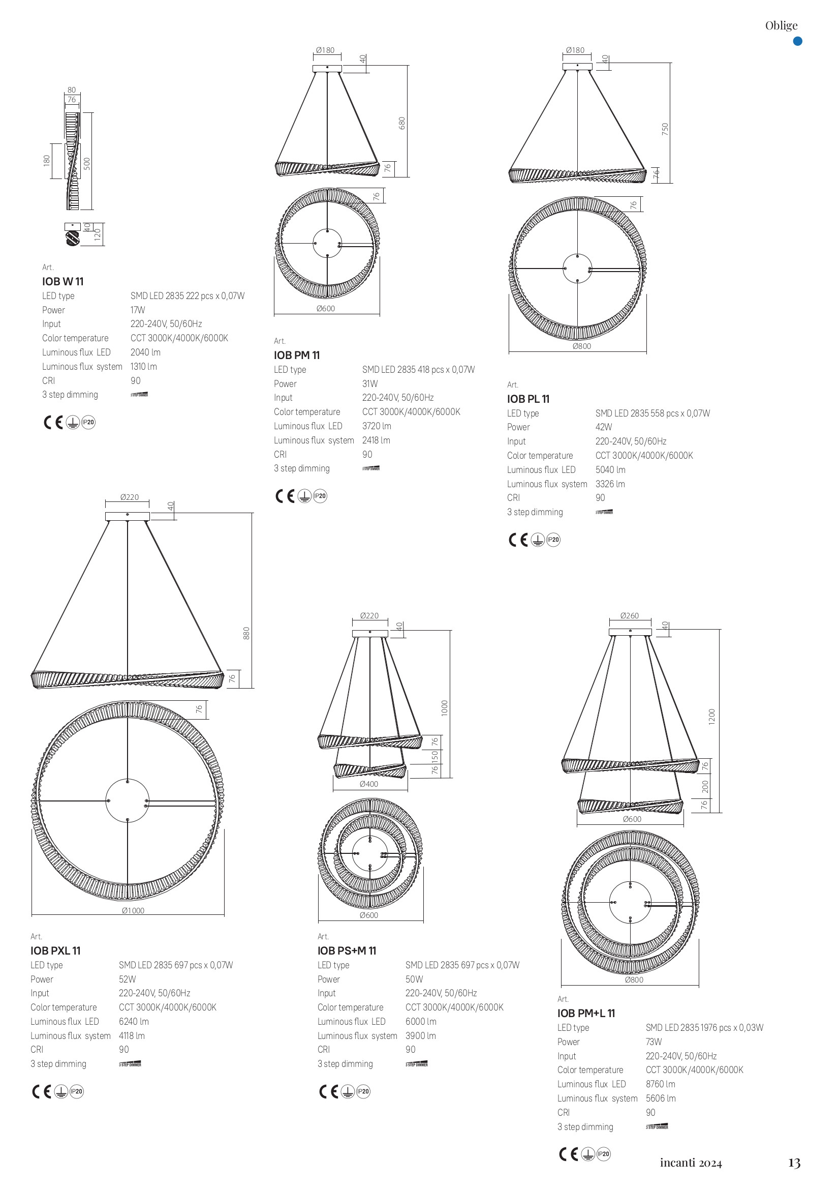 Осветителното тяло IOB PL 11 представлява полилей в съвременен стил. IOB PL 11 е от категорията осветителни тела и е подходящо за осветяване на различни помещения и пространства като: всекидневна / хол, спалня, кухня, трапезария, офис.