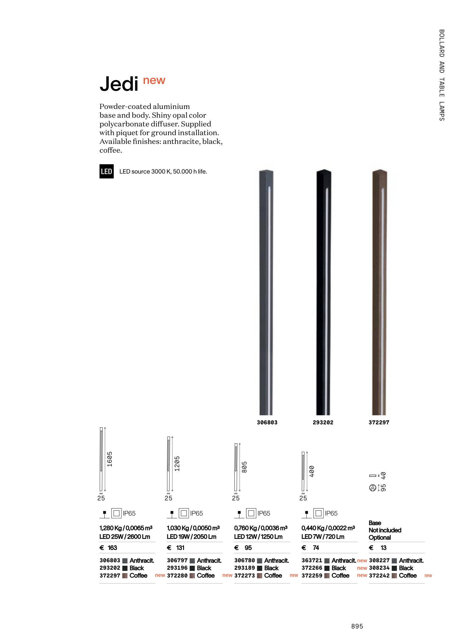 алуминиев корпус с прахово нанесено покритие в цвят кафе, дифузьор от полимер в цвят бял опал, доставя се с пикет за фиксация в почвата, при монтаж на твърда повърхност, трябва да се закупи и основа 372242