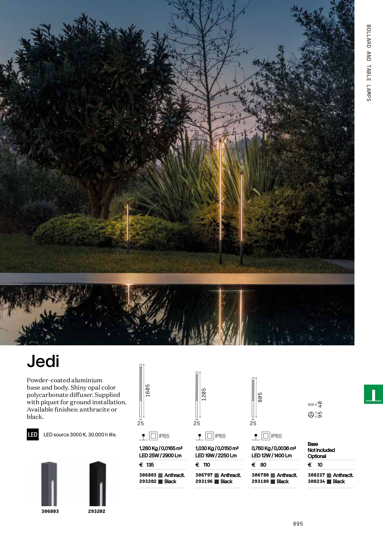 Осветителното тяло JEDI PT H160 NERO ще осигури комфорт и естетика във всяко помещение, в което се постави. Цялостната визия и дизайн на лампата и вложените в изработката й материали, като алуминиев корпус с прахово нанесено покритие в черен цвят, дифузьор от полимер в цвят бял опал, доставя се с пикет за фиксация в почвата, при монтаж на твърда повърхност, трябва да се закупи и основа 308227 или 308234, ще допринесат за един неповторим стил. Благодарение на дългогодишния опит, качествените материали и строгия контрол на качеството на изработка на производителя Ideal-Lux (Италия), JEDI PT H160 NERO е на високо европейско ниво.