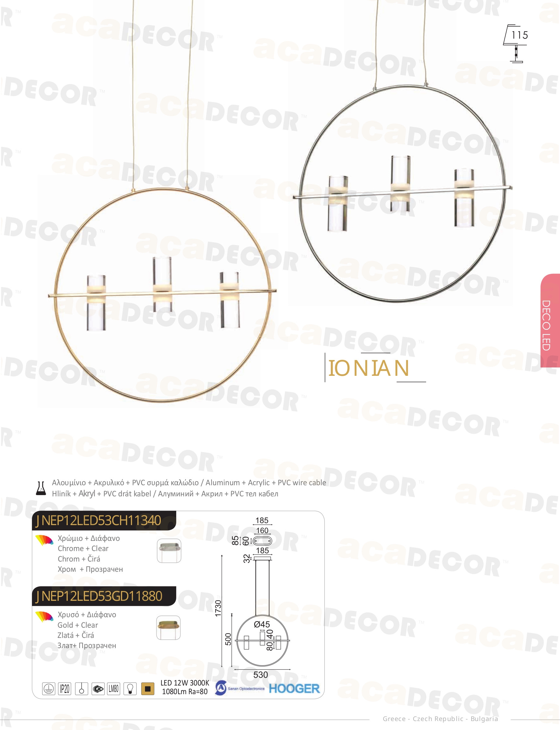 Осветителното тяло JNEP12LED53CH ще осигури комфорт и естетика във всяко помещение, в което се постави. Цялостната визия и дизайн на лампата и вложените в изработката й материали, като алуминий в цвят хром, прозрачен акрил, ще допринесат за един неповторим стил. Благодарение на дългогодишния опит, качествените материали и строгия контрол на качеството на изработка на производителя ACA-Lighting (Гърция), JNEP12LED53CH е на високо европейско ниво.