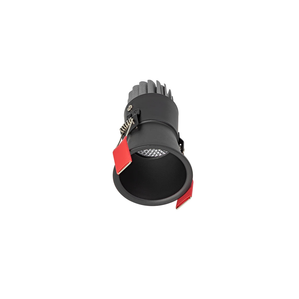 тяло от лят алуминий в черно, рефлектор в сребрист цвят, дифузьор от фасетиран поликарбонат, липса на директни отблясъци, поради формата на рефлектора